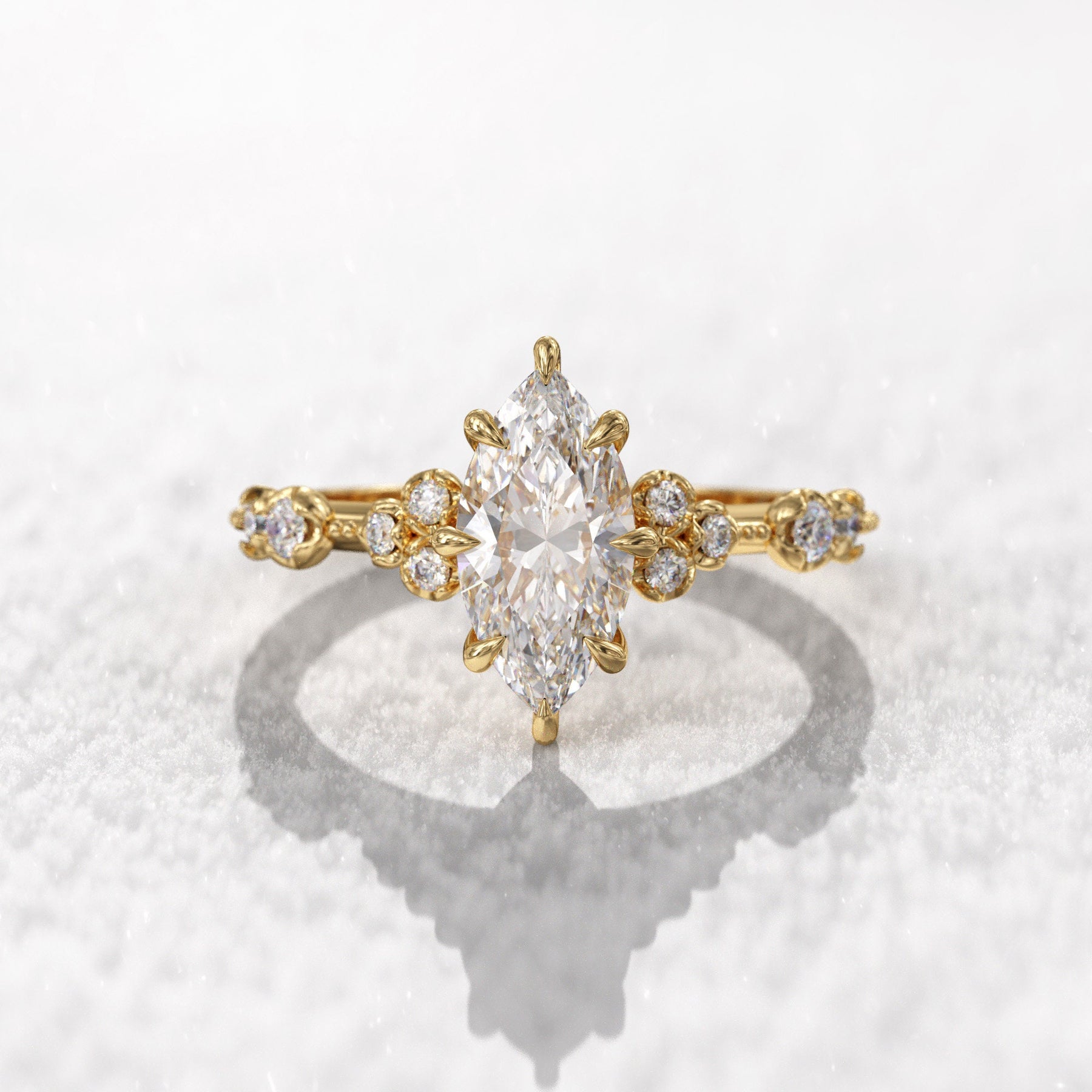0.7 CT Marquise Cut Moissanite Cluster Engagement Ring