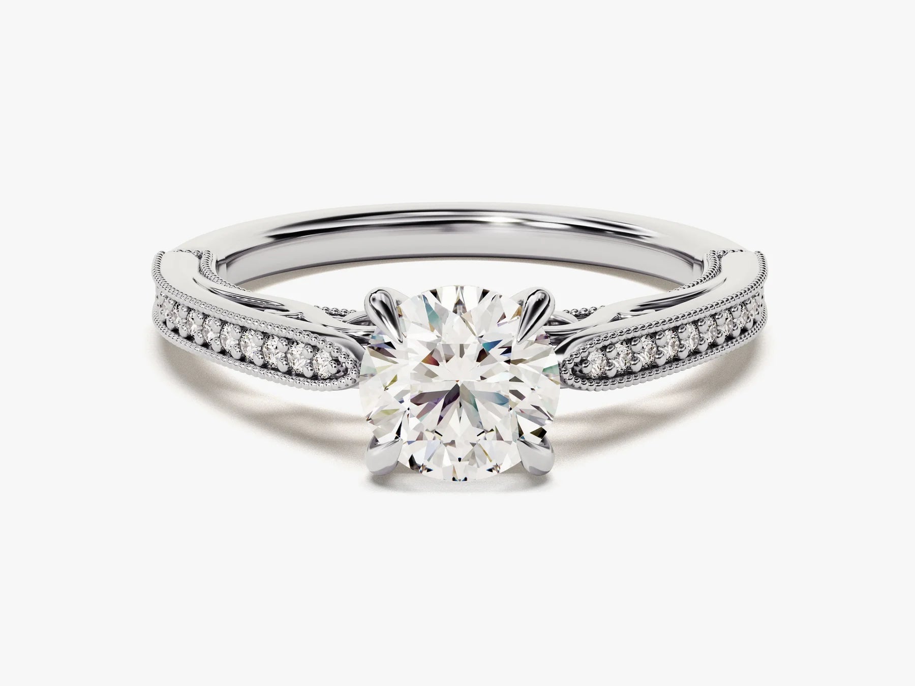 1.0 CT Round Cut Vintage Inspired Pave Setting Moissanite Engagement Ring