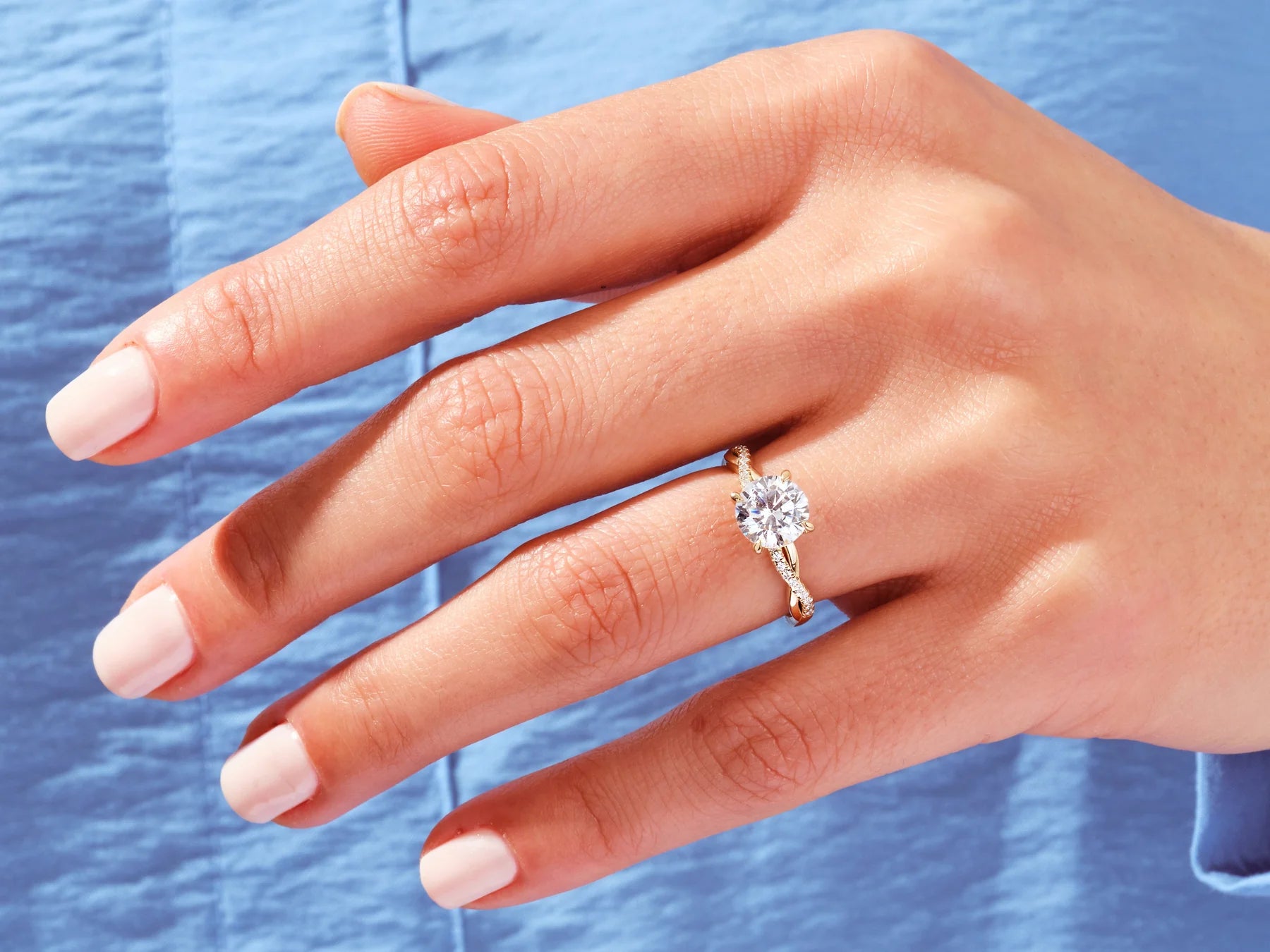 1.0 CT Round Diamond Twisted Pave Setting Moissanite Engagement Ring