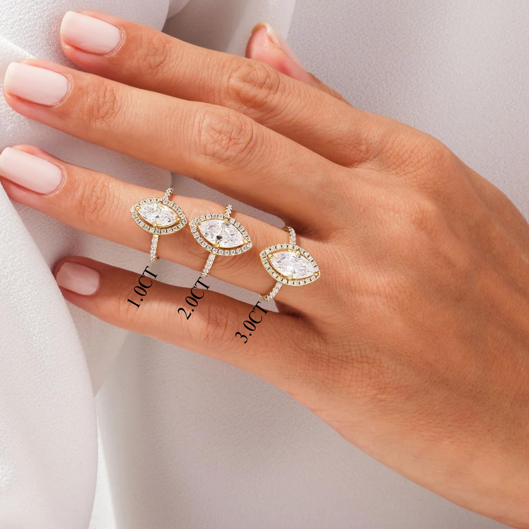 1.0CT Marquise Diamond Halo Pave Setting Moissanite Engagement Ring