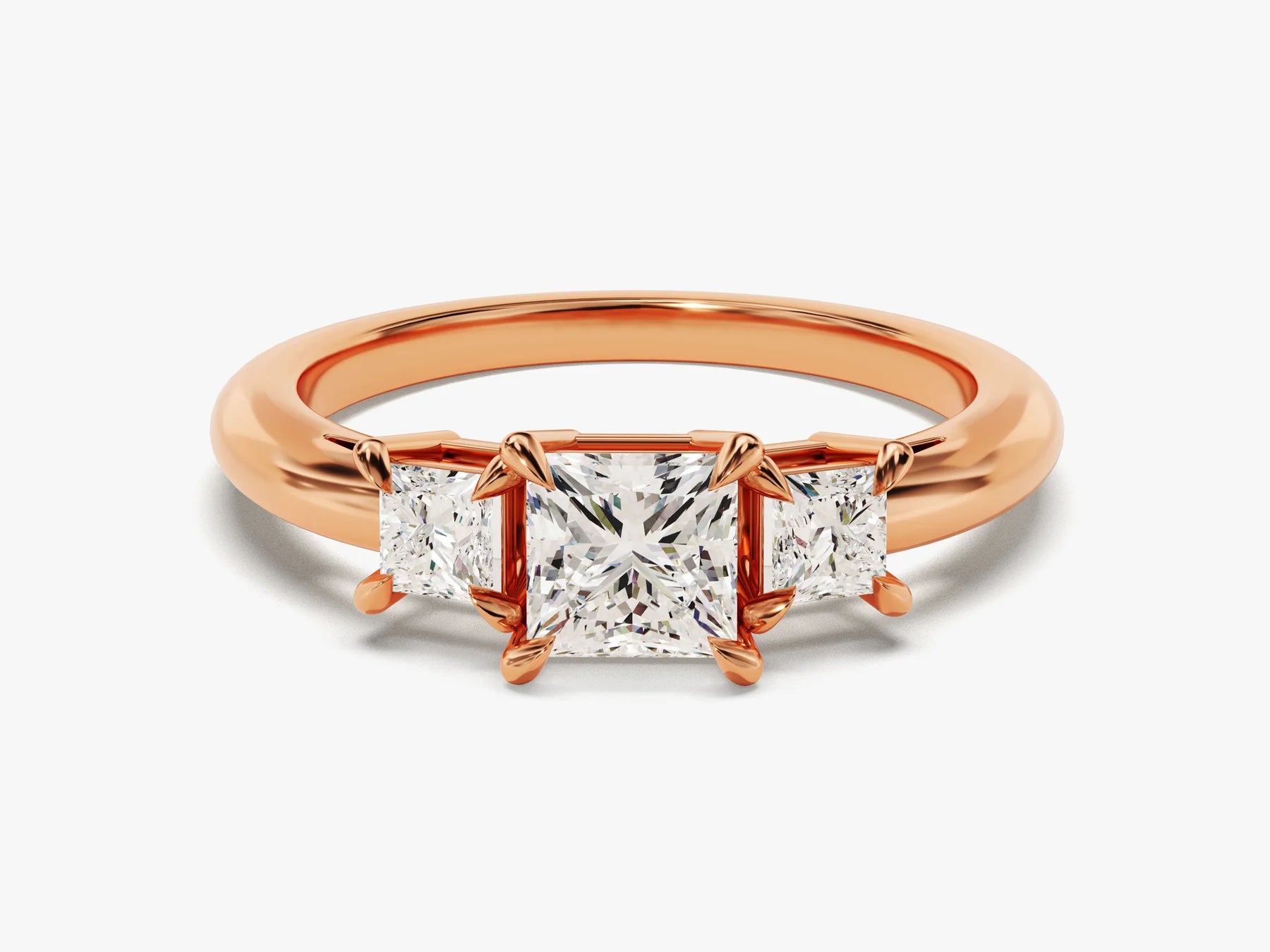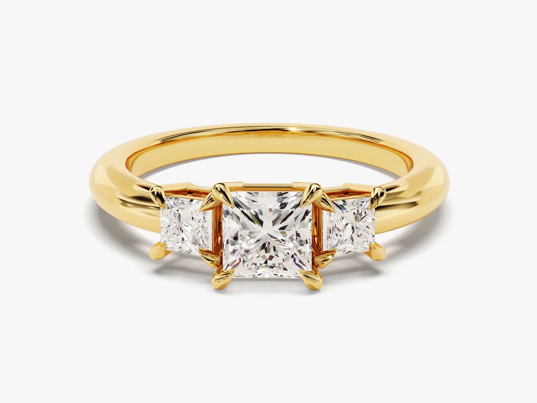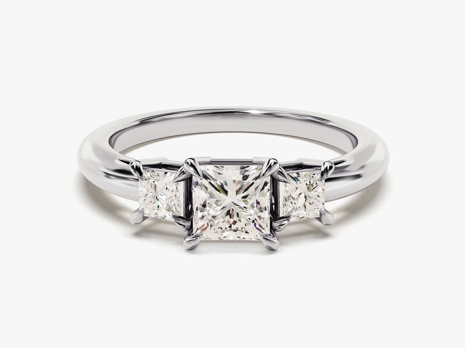 1.0CT Princess Cut Diamond Three Stone Setting Moissanite Engagement Ring