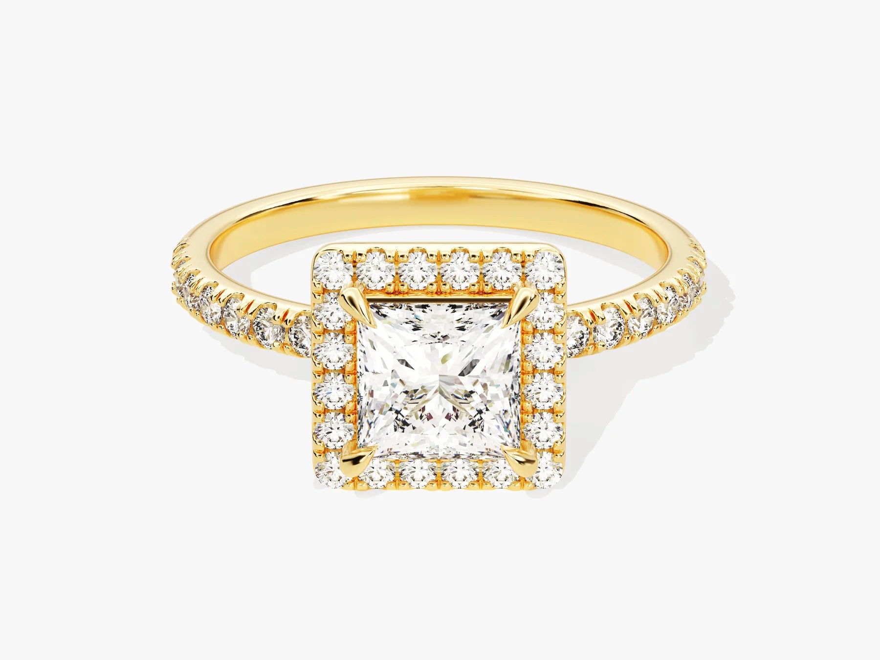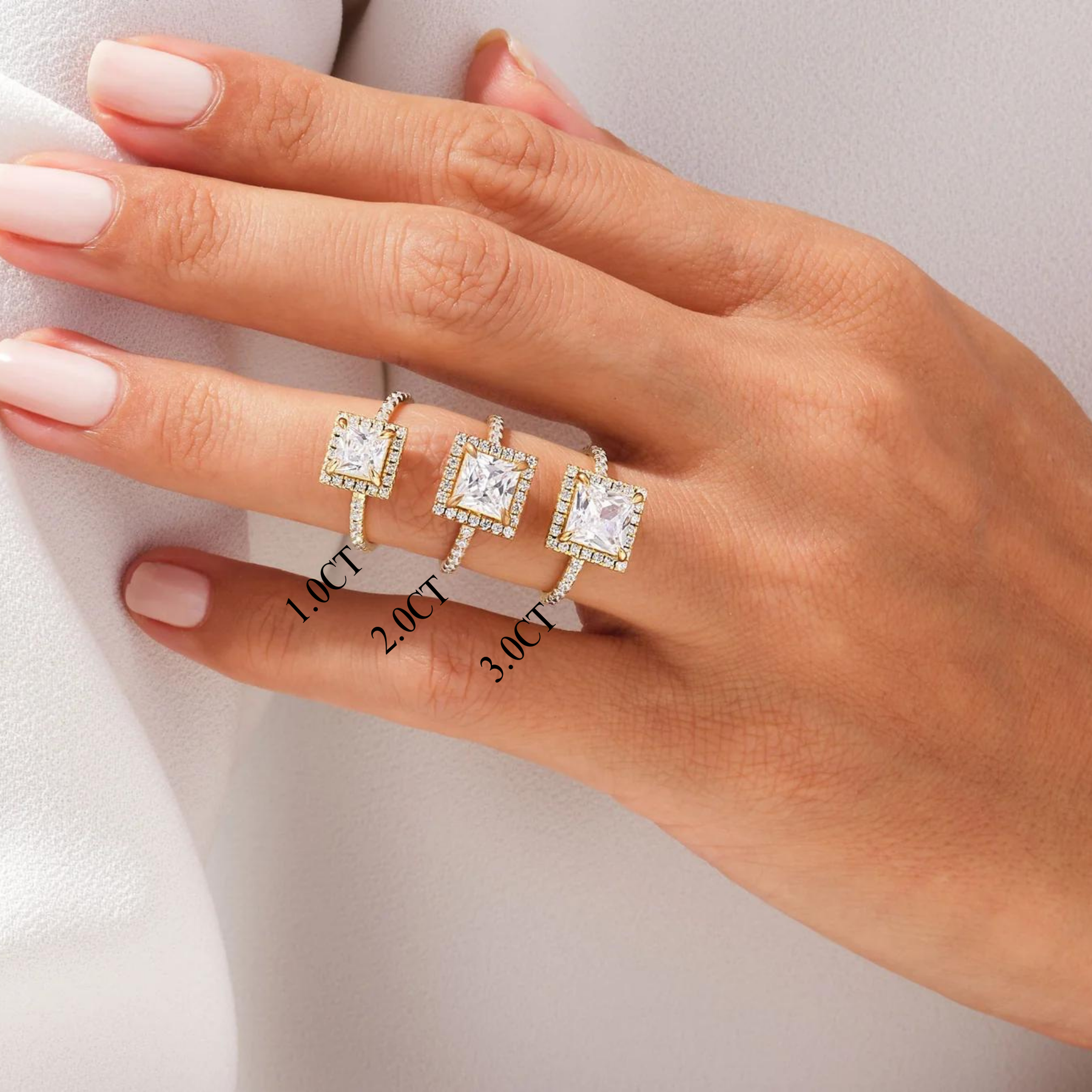 1.0CT Princess Diamond Halo Pave Setting Moissanite Engagement Ring