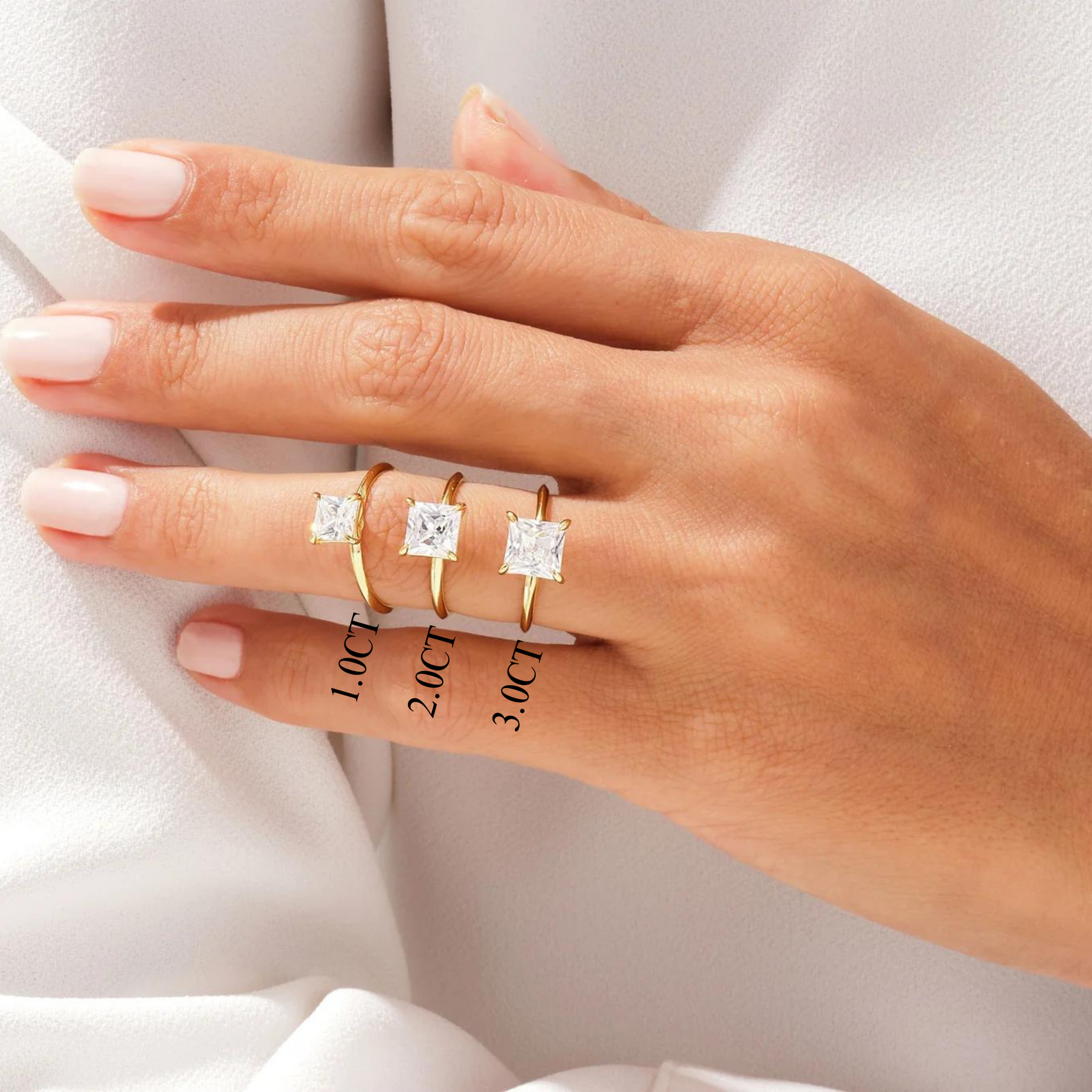 1.0CT Princess Diamond Knife Edge Solitaire Moissanite Engagement Ring