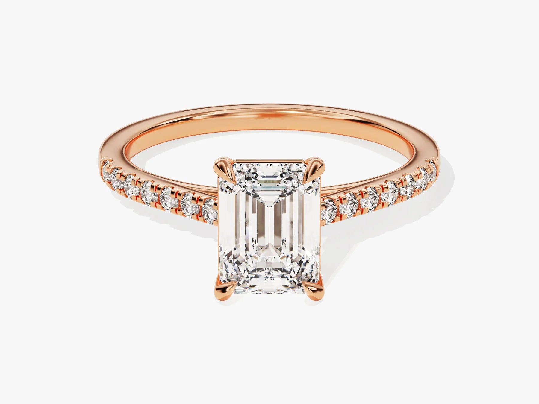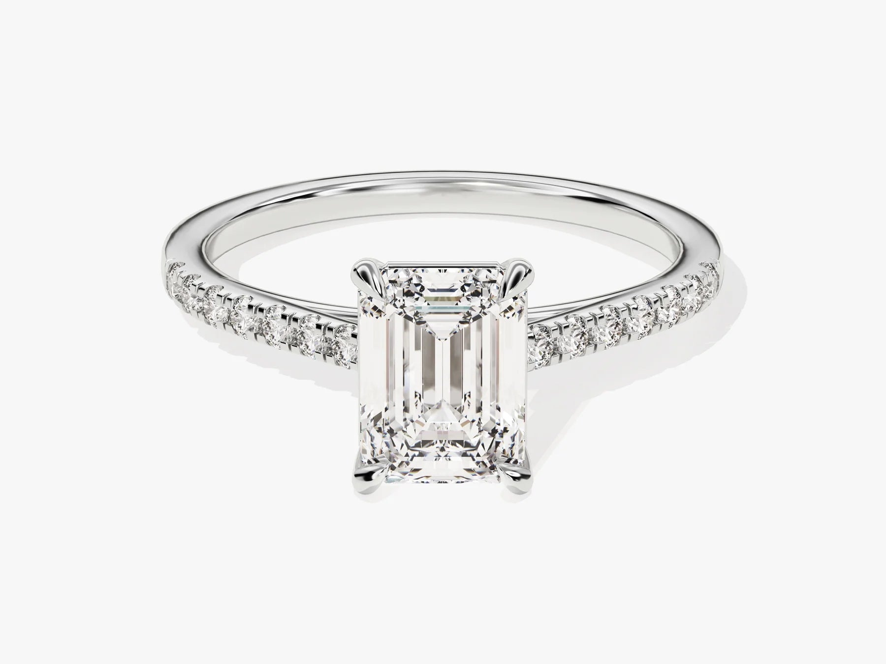 1.50CT Emerald Diamond Pave Setting Moissanite Engagement Ring