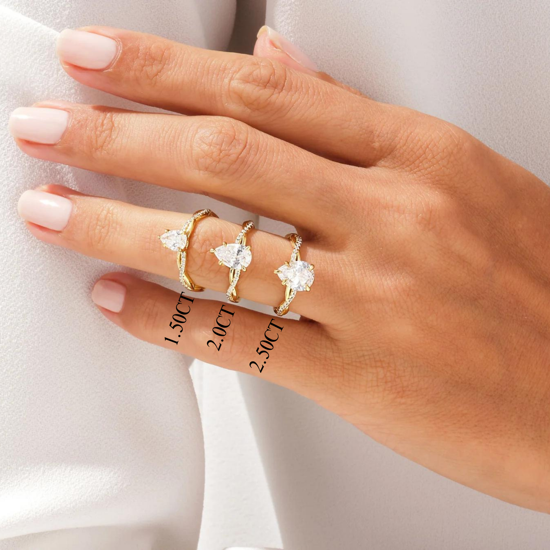 1.50CT Pear Diamond Twisted Pave Setting Moissanite Engagement Ring