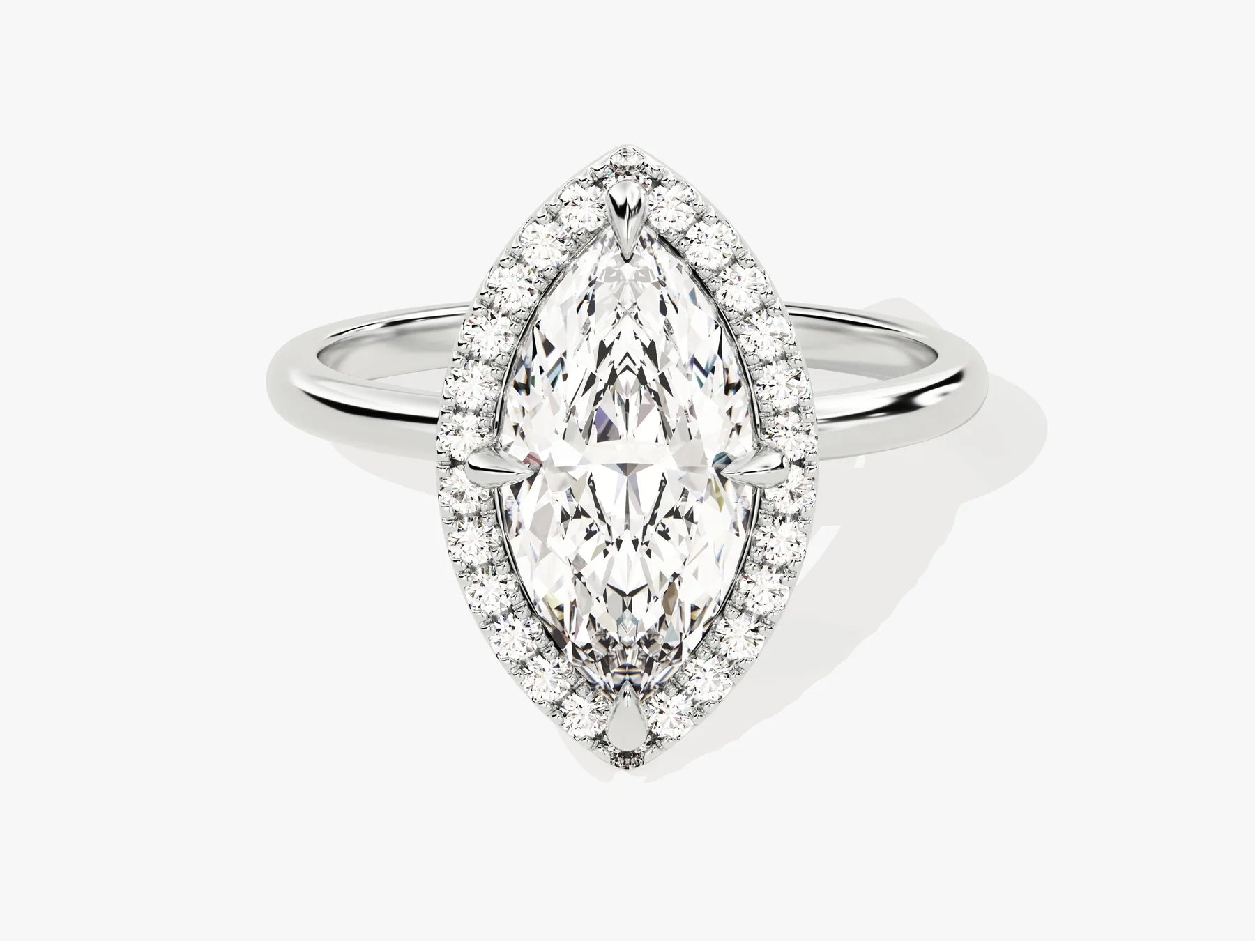 2.0CT Marquise Diamond Halo Moissanite Engagement Ring