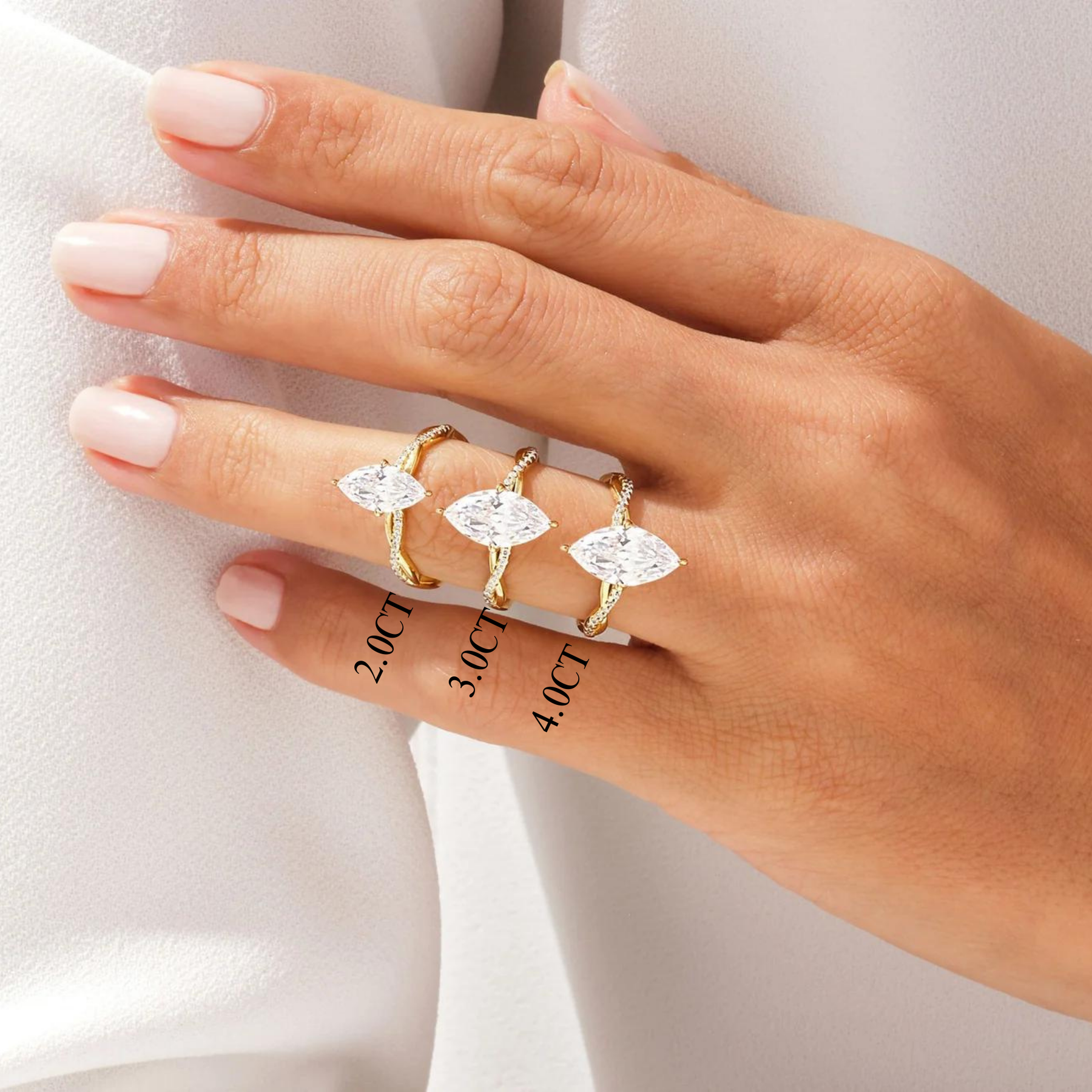2.0CT Marquise Diamond Twisted Pave Setting Moissanite Engagement Ring