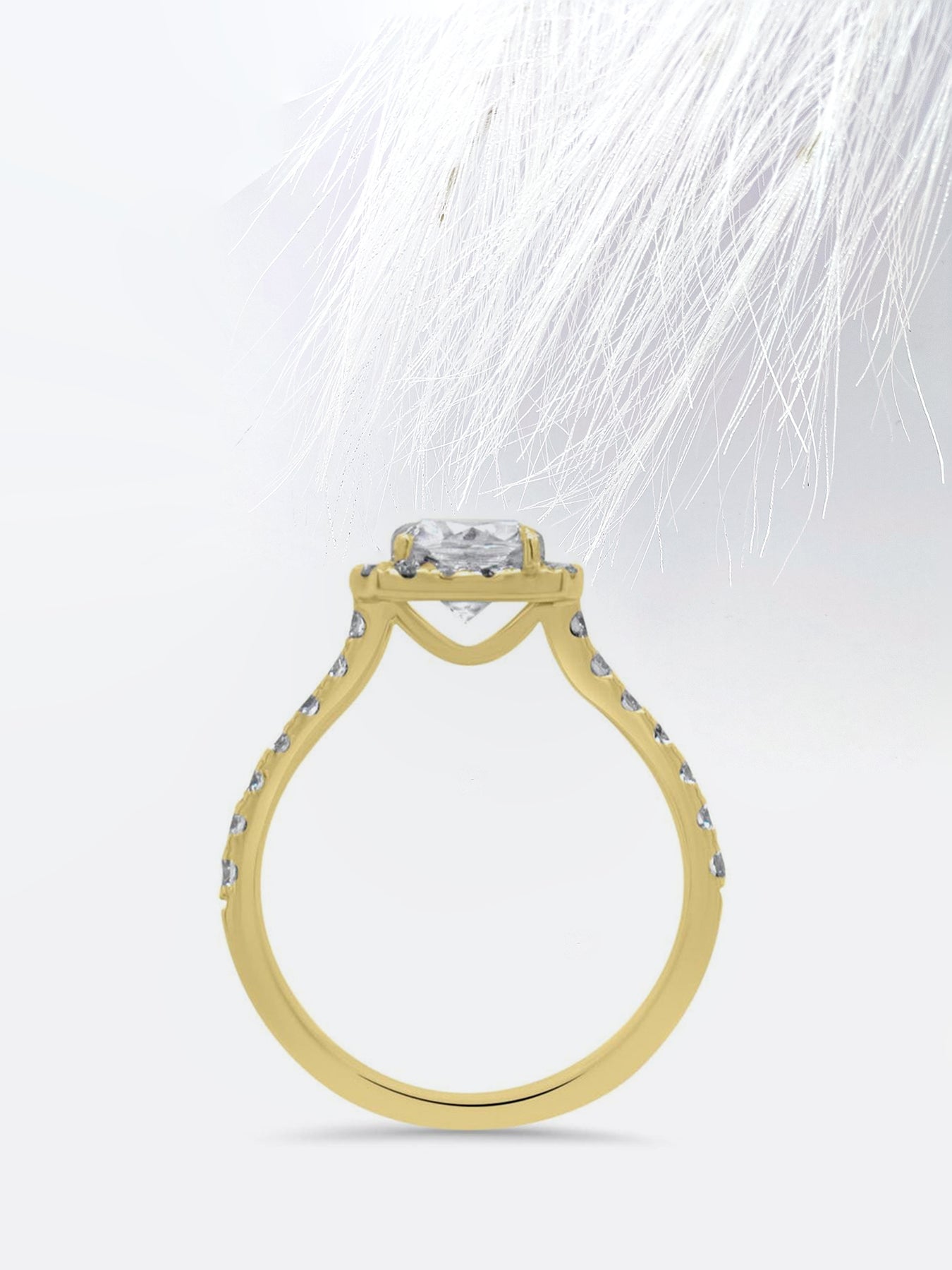 2.0CT Pear Cut Halo Moissanite Diamond Engagement Ring in Yellow Gold