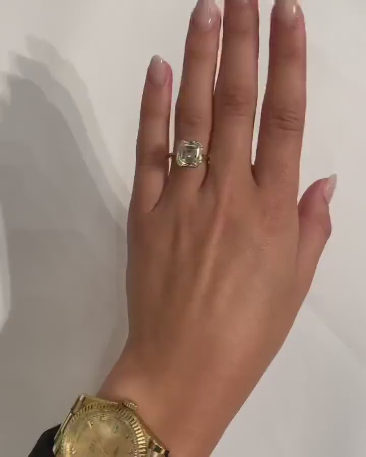 4.0ct Asscher Cut Bezel Moissanite Diamond Engagement Ring For Her