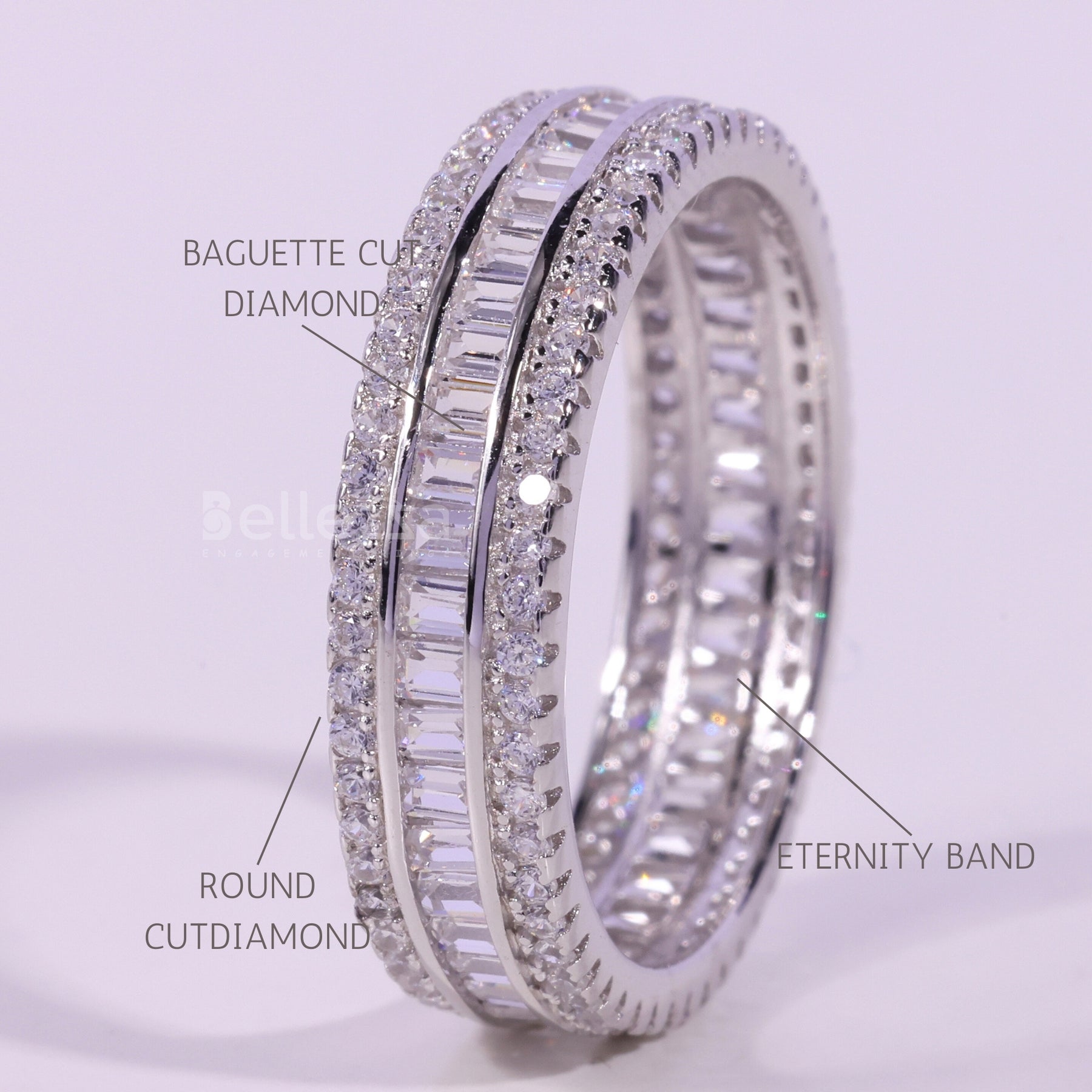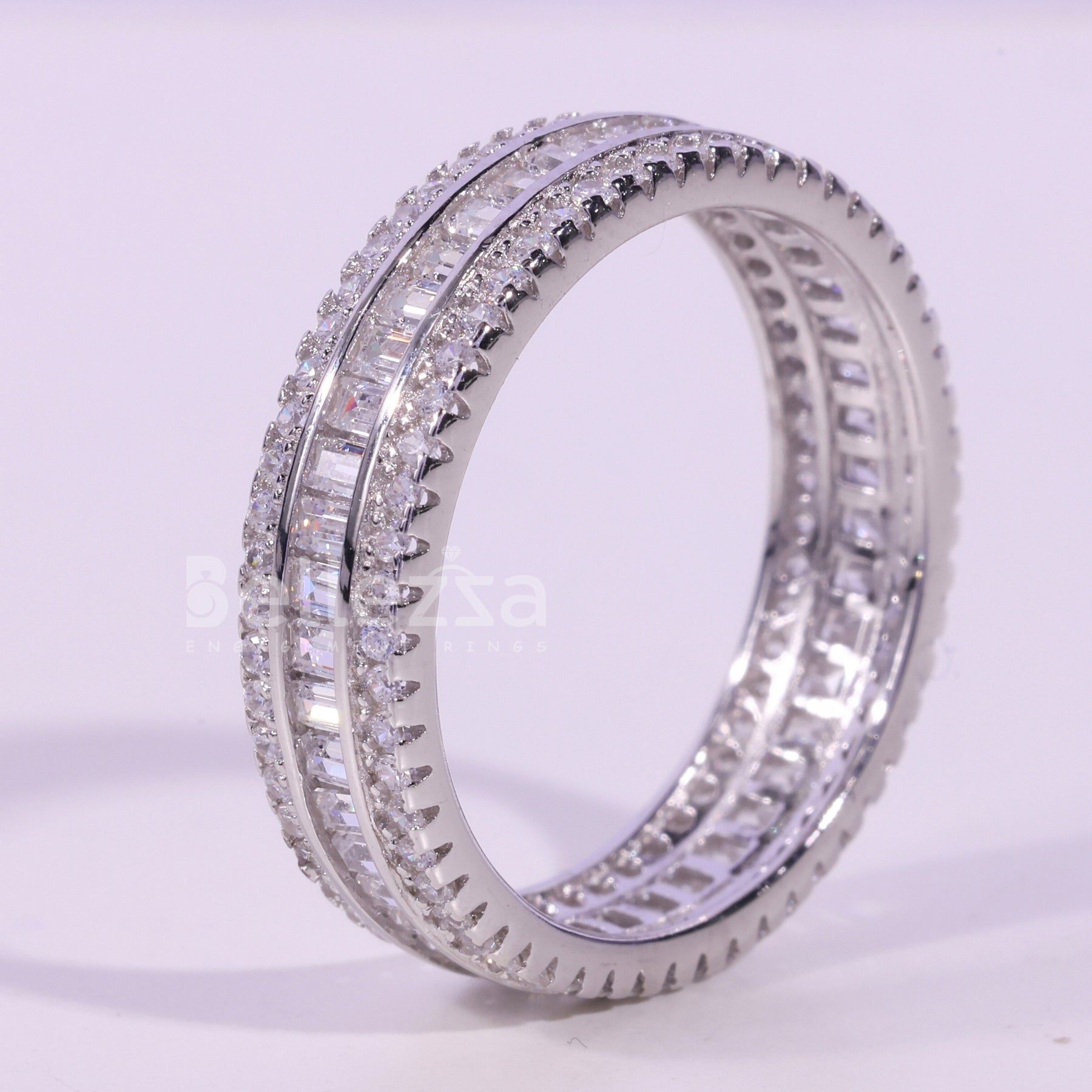 Baguette & Round Cut Moissanite Diamond Full Eternity Wedding Band