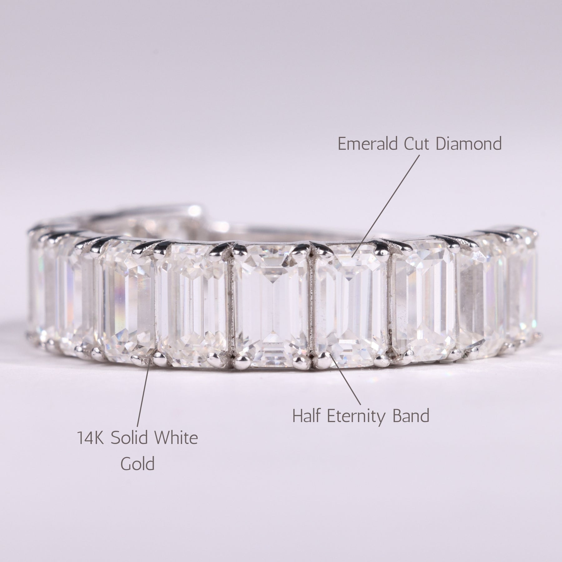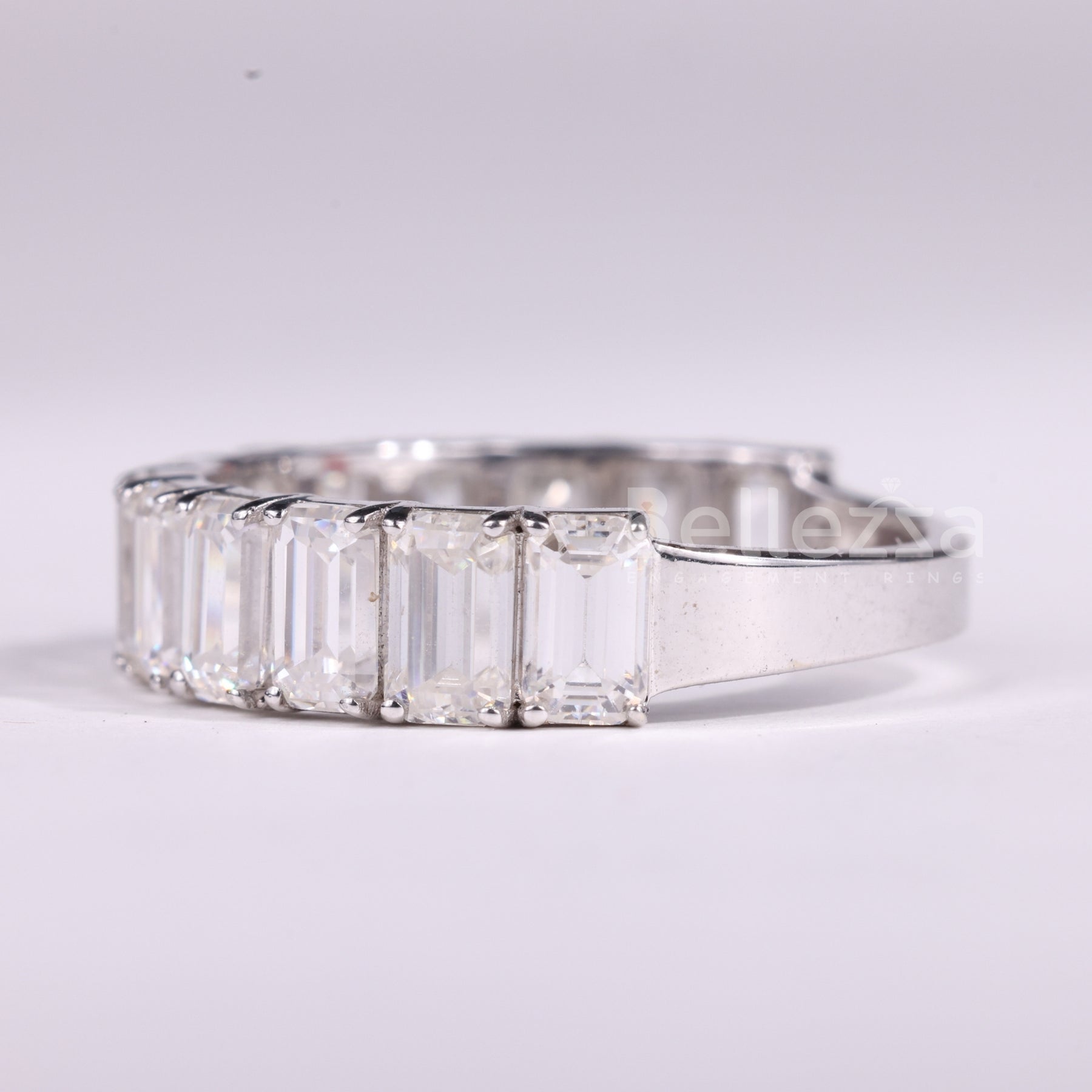 Emerald Cut Half Eternity Moissanite Wedding Band