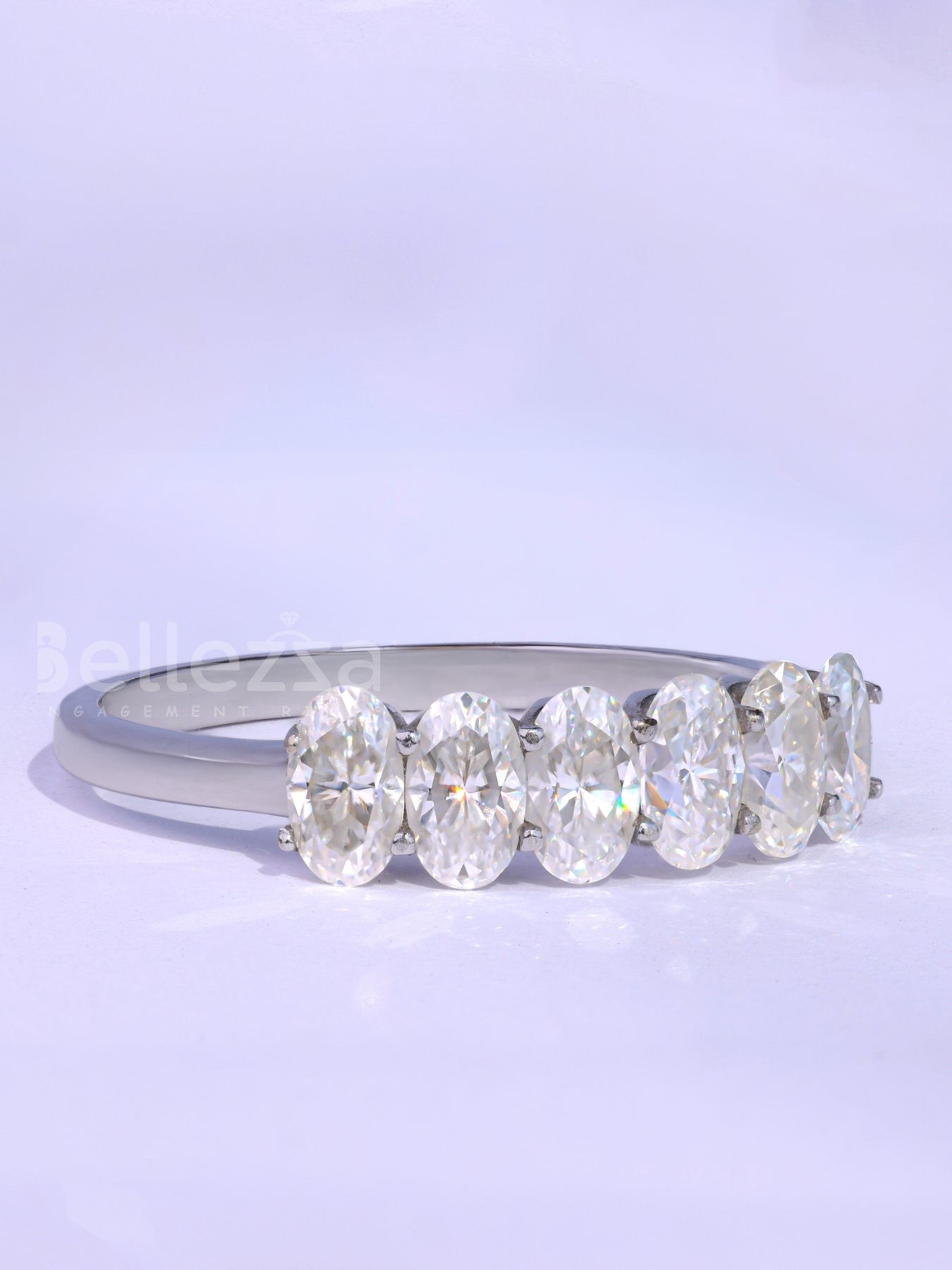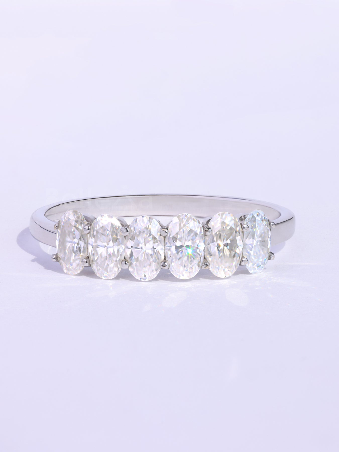 ✥Celebrate elegant simplicity with this Oval Cut Six Diamond Moissanite Wedding Band. Featuring six brilliantly faceted oval-cut moissanite stones, it offers a balanced blend of sparkle and sophistication. The clean, minimal design adds timeless charm to any bridal stack. Expertly crafted in your choice of precious metal for a polished and durable finish. Each stone is hand-selected for clarity, fire, and brilliance. Perfect as a wedding band or anniversary gift. A refined piece that honors love with graceful beauty.