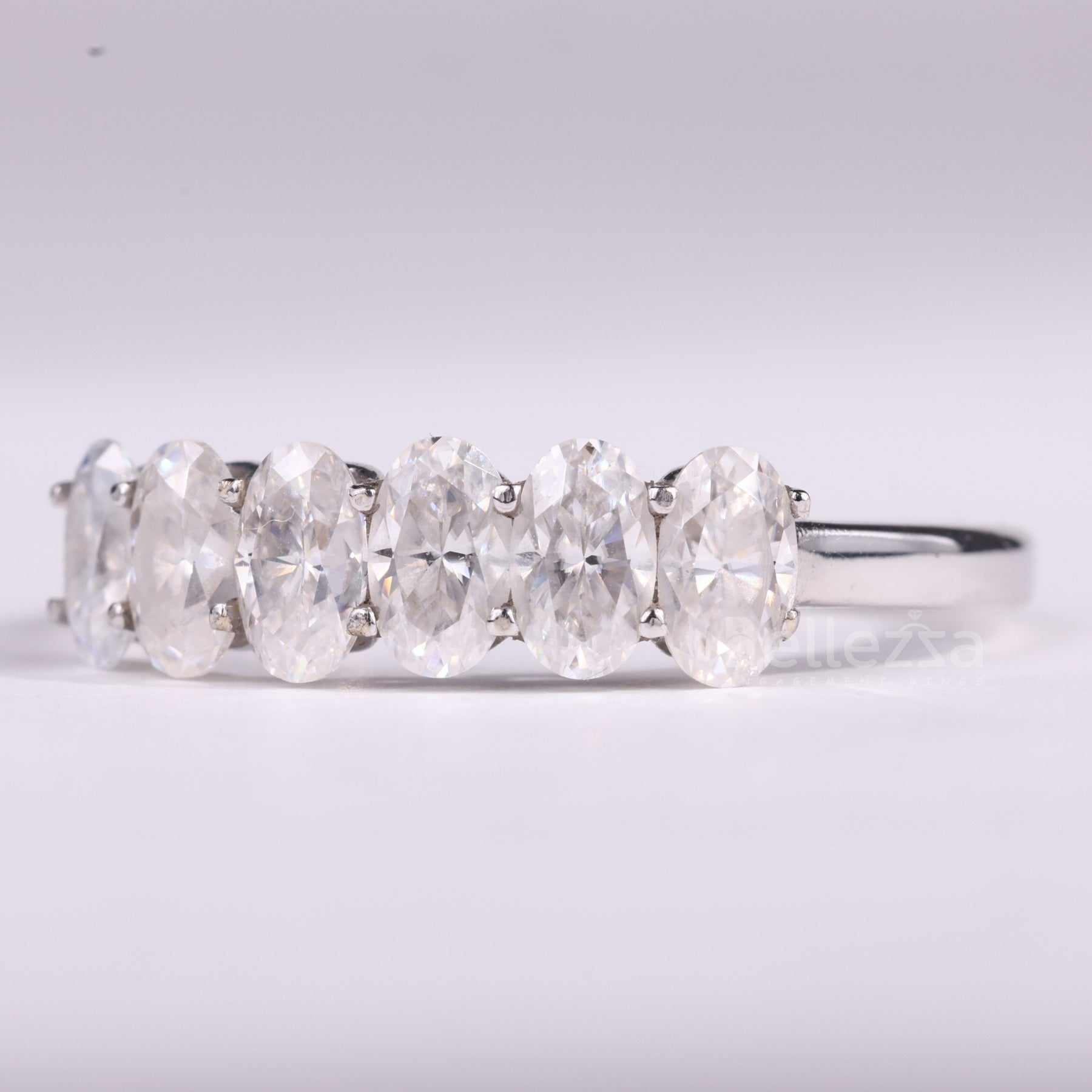 ✥The image is showing an Oval Cut Six Diamond Moissanite Wedding Band, designed to radiate elegance and timeless sparkle. Featuring six brilliant oval cut stones set in a sleek band, this design offers brilliance and symmetry for a refined look. The luxurious moissanite wedding band combines durability, modern style, and radiant beauty. Perfect as a diamond wedding band, it shines brightly whether worn alone or paired with an engagement ring. With a stunning six-stone arrangement, this wedding band symbolizes eternal love and commitment. Expertly crafted with precision, it balances sophistication with everyday wearability. Celebrate your special moments with a band that is both elegant and unforgettable.