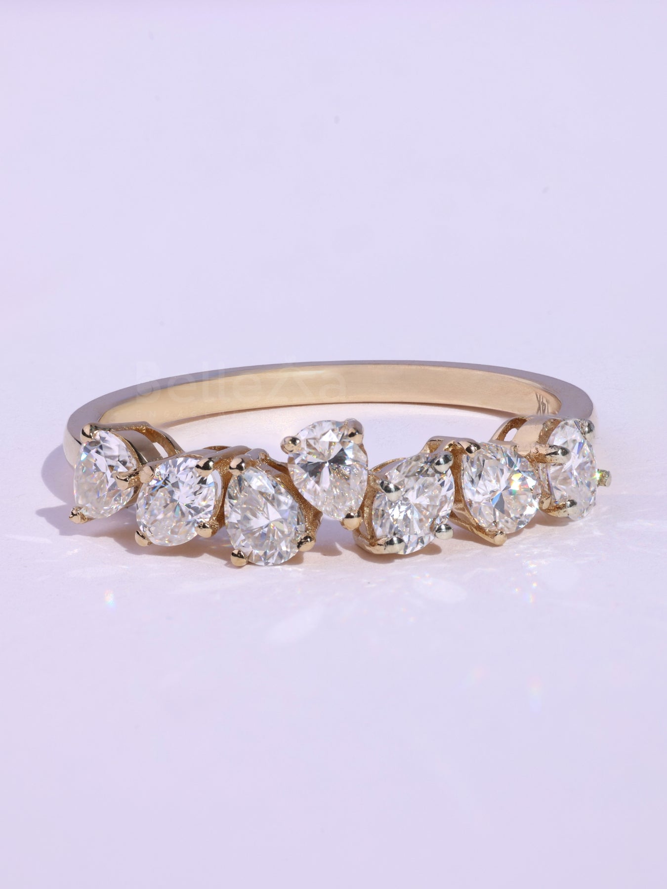 Oval & Pear Cut Cluster Diamond Moissanite Wedding Band