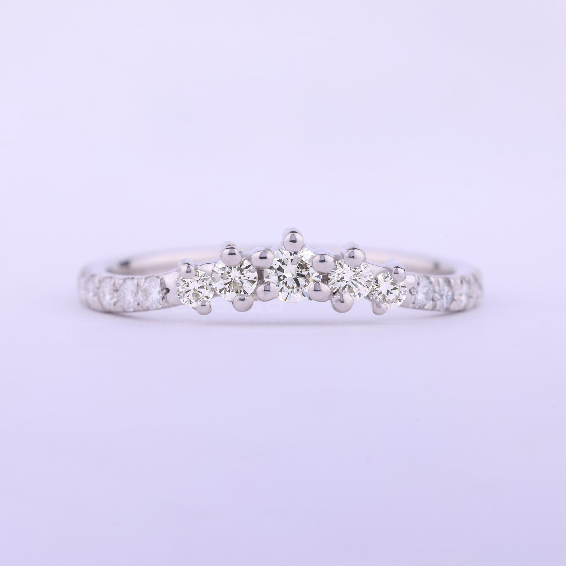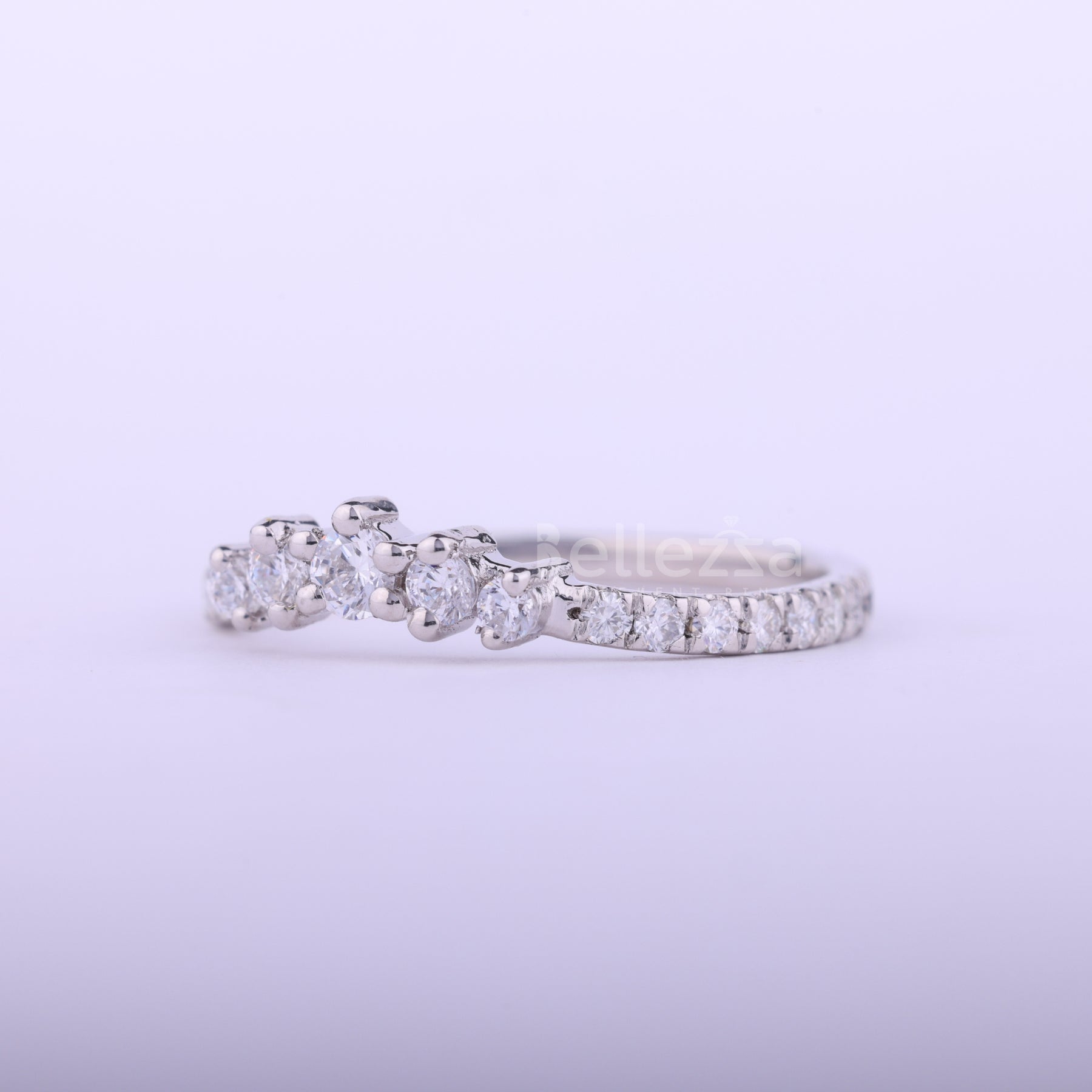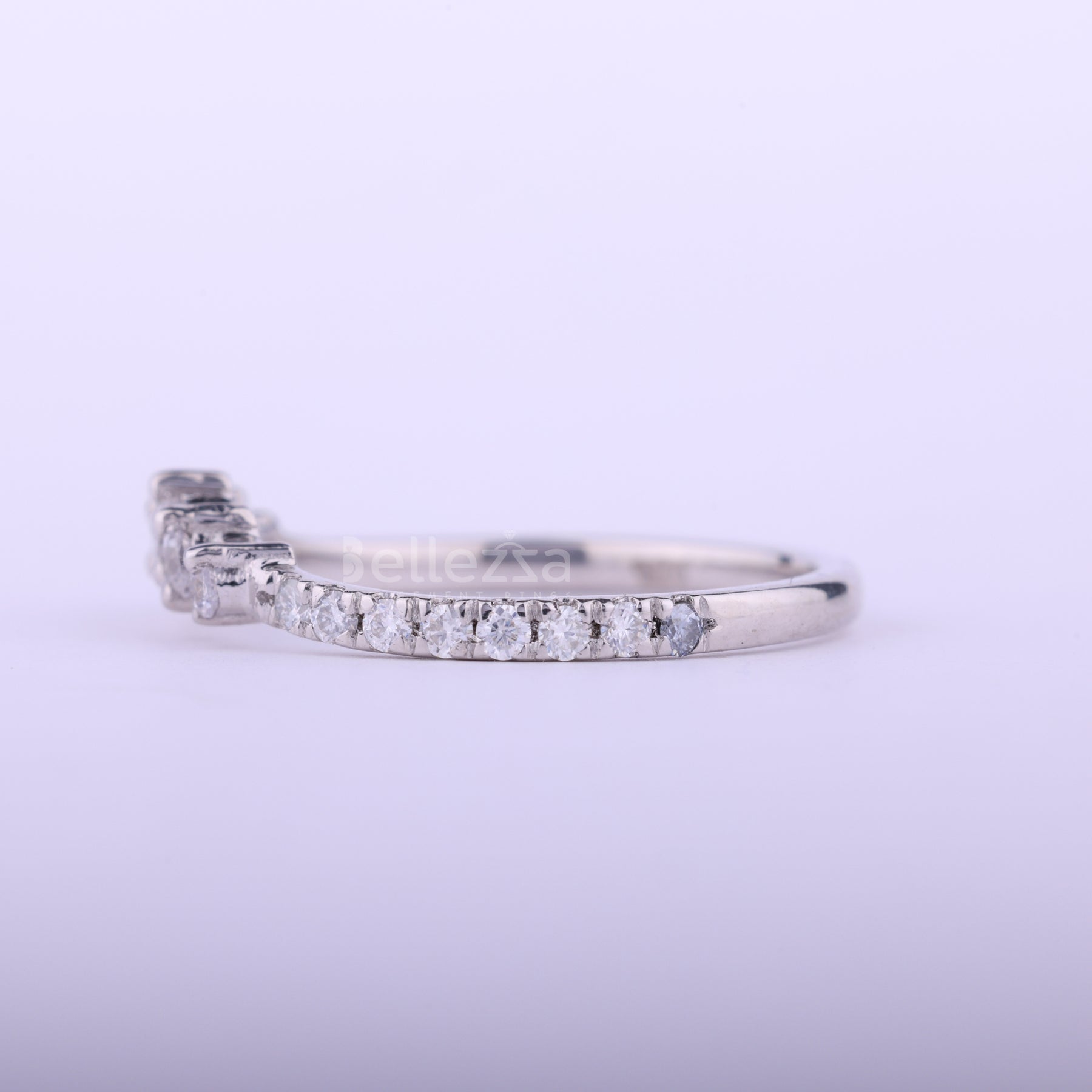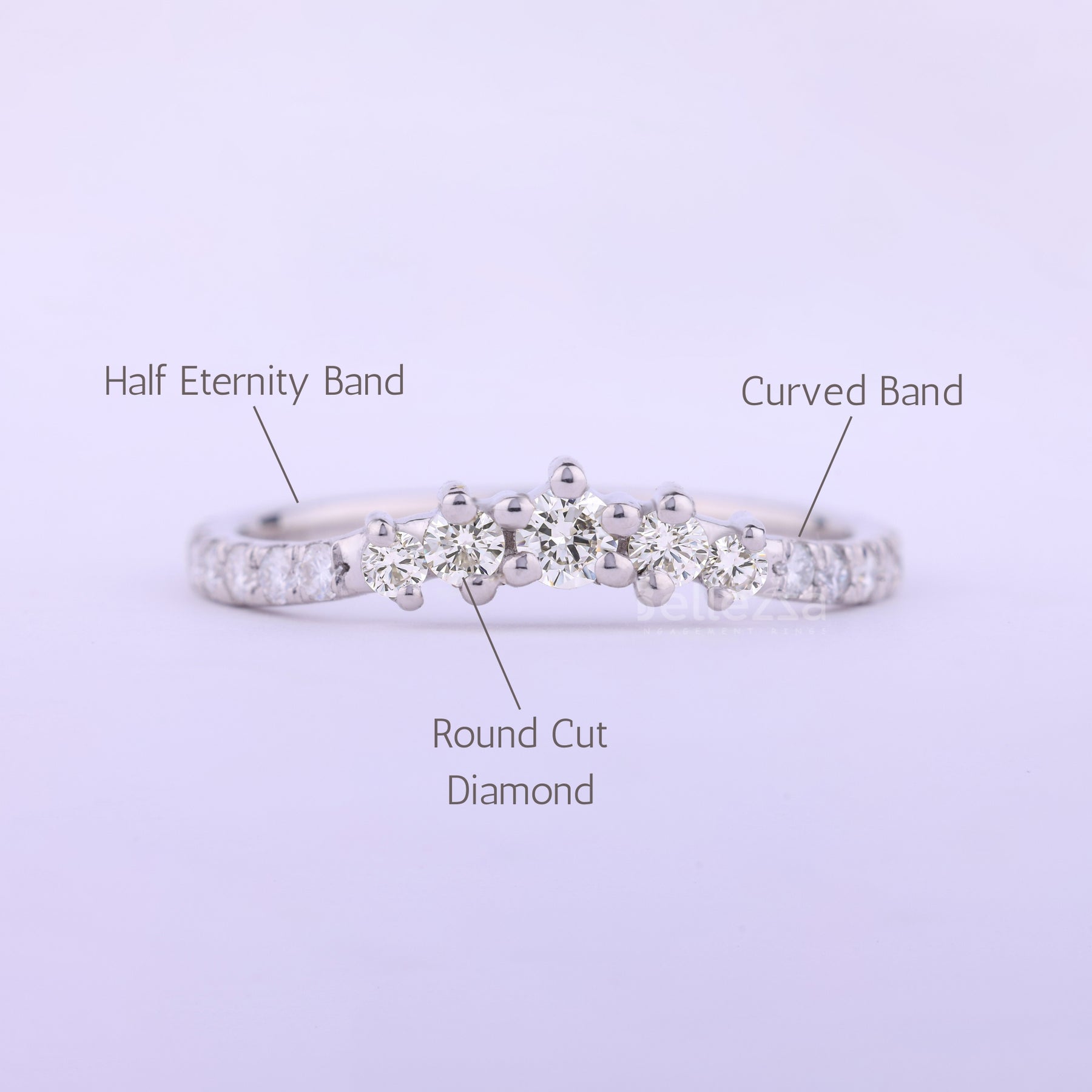 ✥The image showcases an elegant Round Cut design in this beautiful Curved Moissanite Wedding Band For Her. Featuring sparkling round cut moissanite stones arranged along a graceful curve, this band is crafted to complement engagement rings perfectly while adding extra brilliance. The curved design ensures a seamless fit, wrapping the finger with exceptional sparkle and timeless elegance. Expertly made for durability and comfort, this moissanite wedding band is ideal for daily wear or special occasions. Celebrate your love story with this sophisticated and radiant piece.