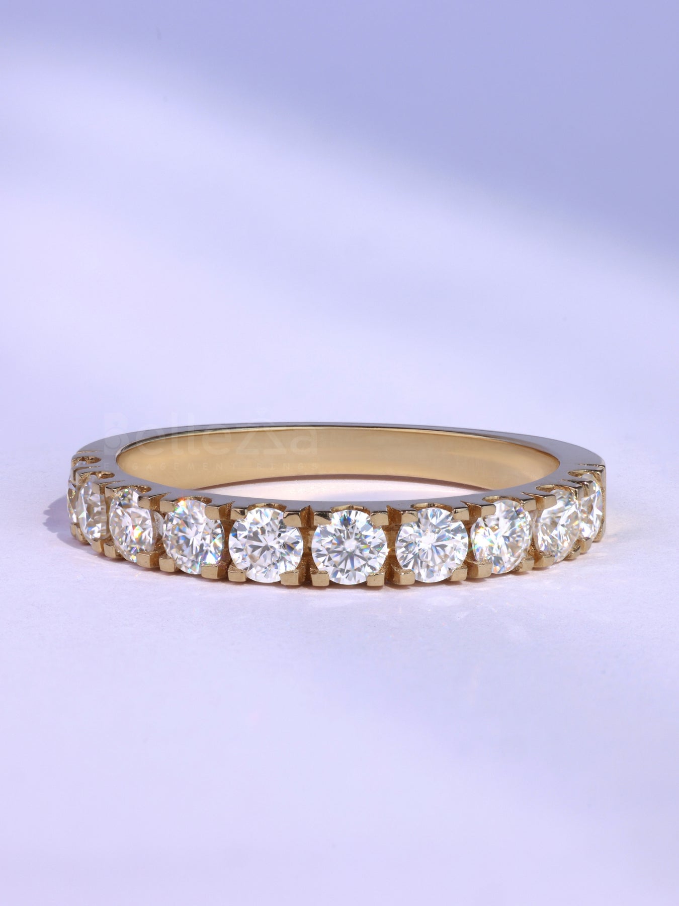 Round Cut Diamond Pave Setting Half Eternity Wedding Band