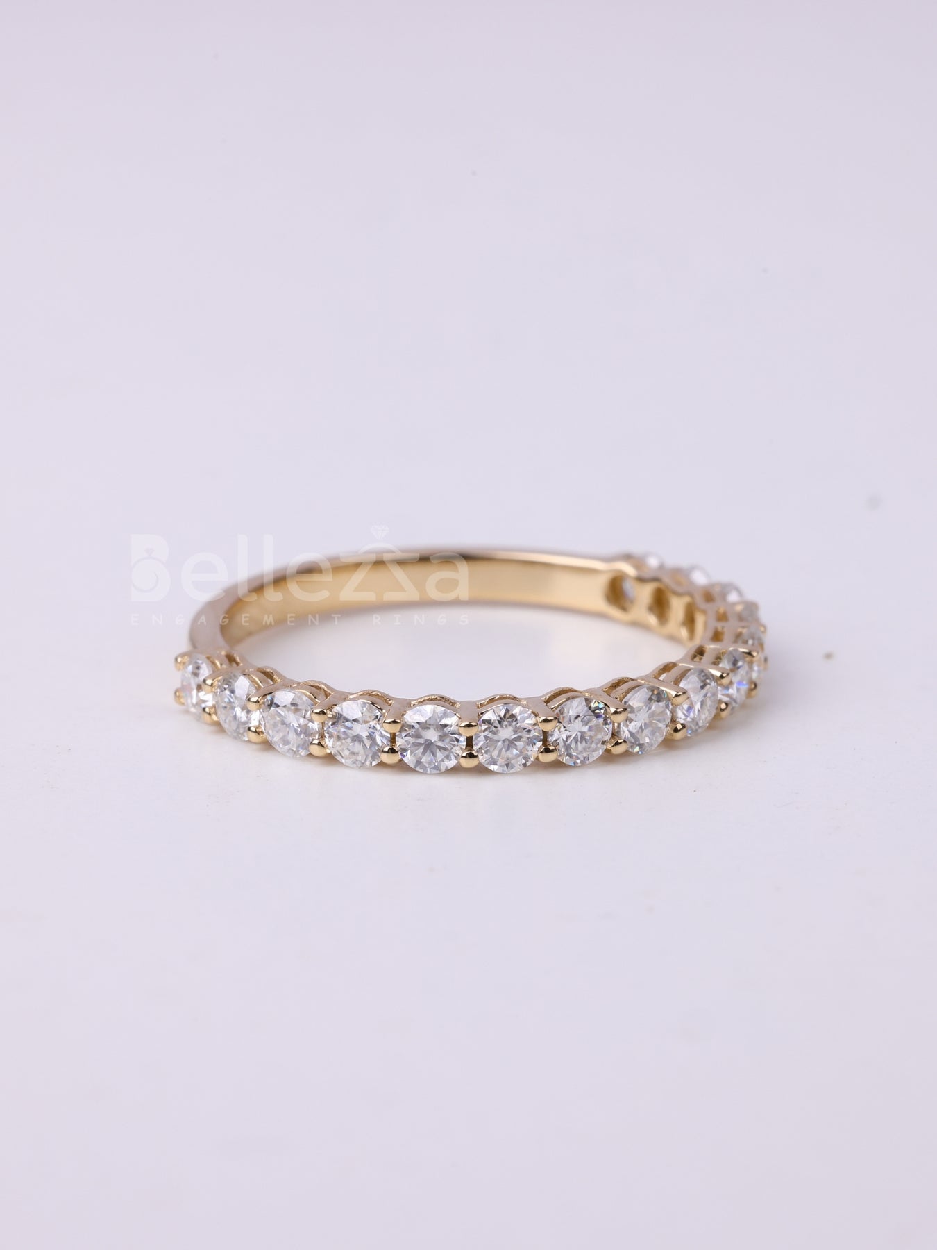 ✥Celebrate lasting love with this Round Cut Diamond Half Eternity Wedding Band. Featuring a sleek row of brilliant round diamonds, it offers timeless sparkle and refined elegance. The half eternity design ensures comfort while symbolizing unending commitment. Each diamond is expertly set to maximize shine and symmetry. Crafted in your choice of precious metal for a personalized touch. Perfect on its own or paired with an engagement ring. A graceful band that marks your forever with brilliance.