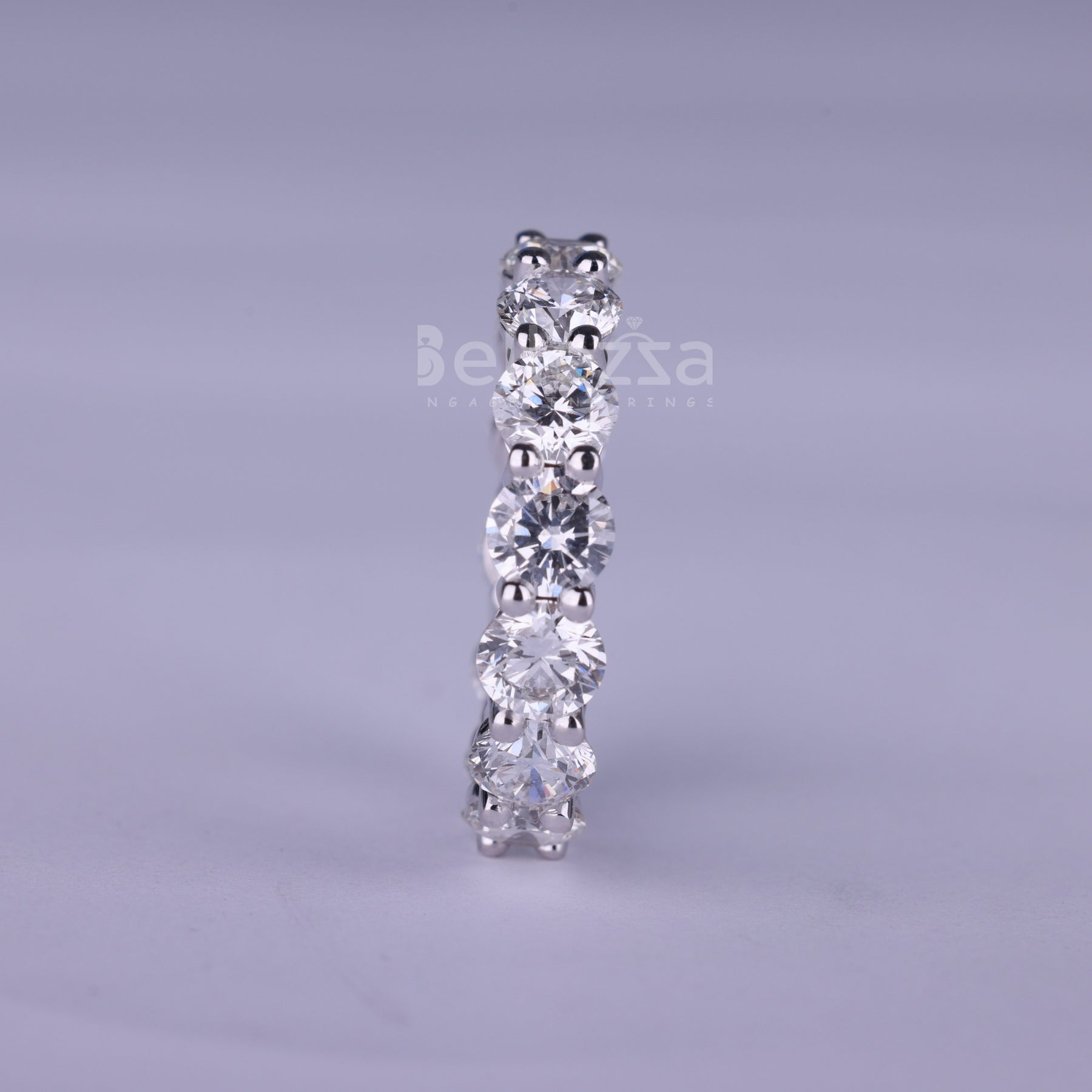 ✥The image showcases an elegant Round Cut design in this stunning Full Eternity Moissanite Wedding Band. Featuring perfectly matched round cut moissanite stones encircling the entire band, this design symbolizes unending love with continuous, radiant sparkle. Expertly crafted for lasting durability and a comfortable fit, the full eternity band adds timeless sophistication to any bridal set or stands out beautifully on its own. Perfect for daily wear or special occasions, this moissanite wedding band is a meaningful and elegant celebration of commitment.