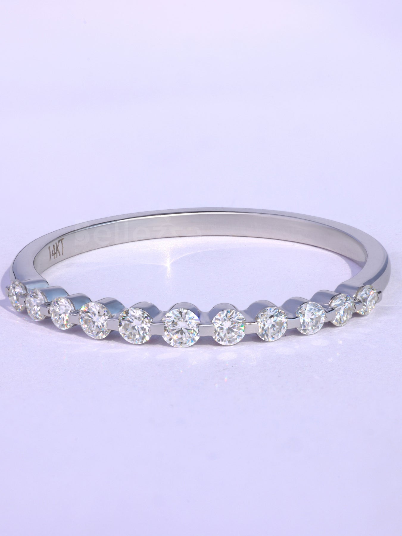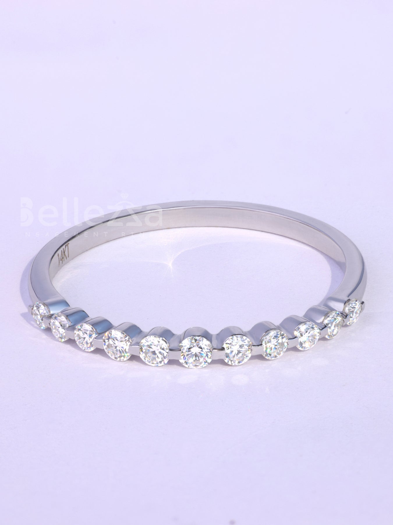 Round Cut Half Eternity Moissanite Wedding Band For Her