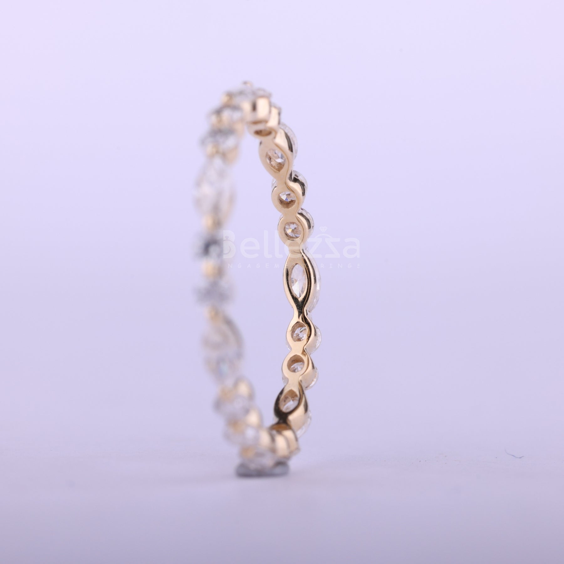 ✥The image features an exquisite Round & Marquise Cut Full Eternity Moissanite Wedding Band, designed to symbolize love that never ends. Alternating Round Cut and Marquise Cut moissanite stones wrap around the entire band, creating a graceful pattern of sparkle and elegance. The Full Eternity design ensures brilliance from every angle, making it perfect for marking life’s most meaningful moments. This luxurious Moissanite Wedding Band is crafted for durability and lasting shine, offering an ethical and radiant alternative to diamonds. Ideal for stacking or wearing solo, it’s a timeless piece that reflects modern romance and refined style.
