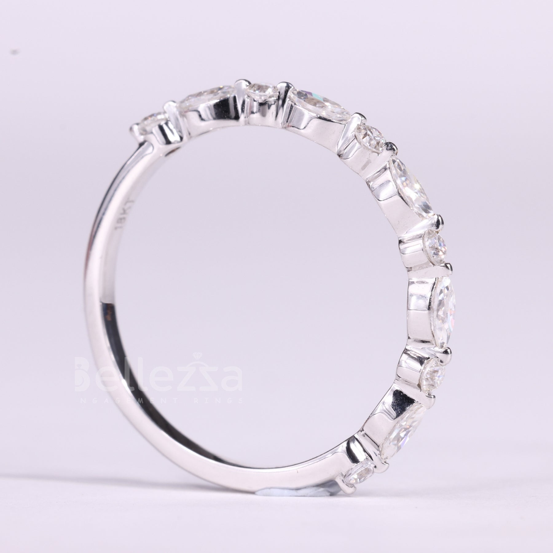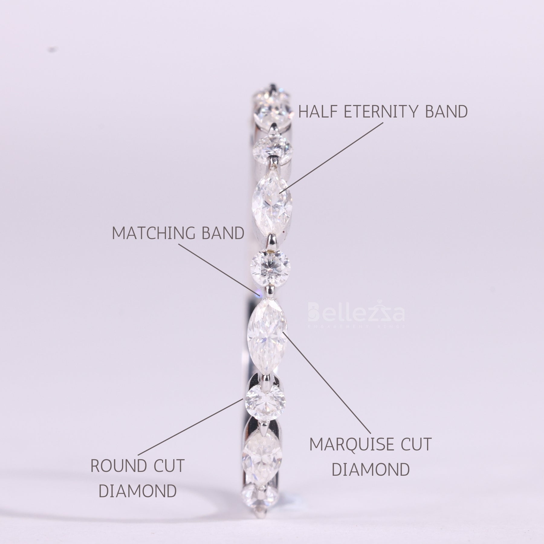Round & Marquise Cut Half Eternity Moissanite Wedding Band