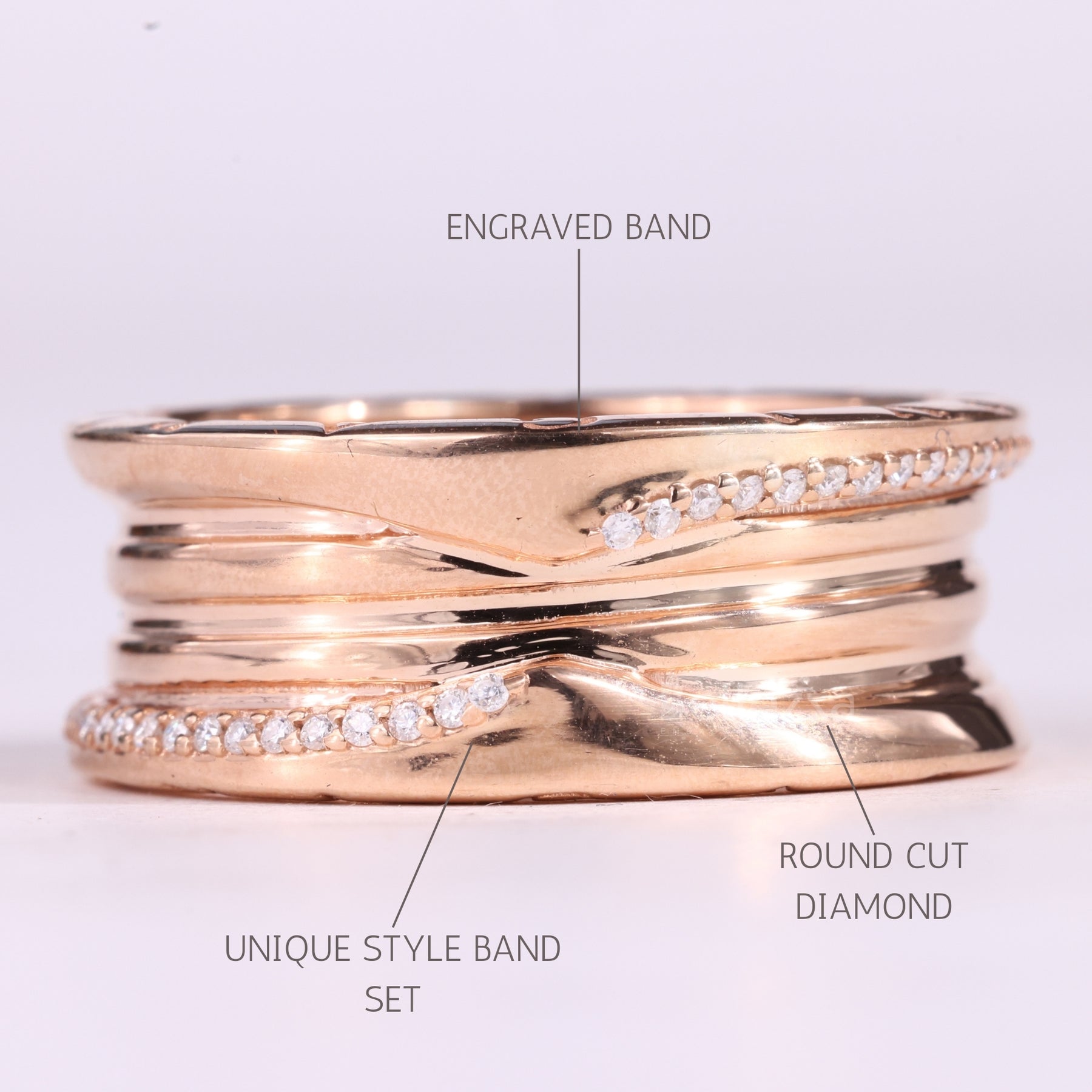 Unique Round Cut Diamond Wide Moissanite Wedding Ring