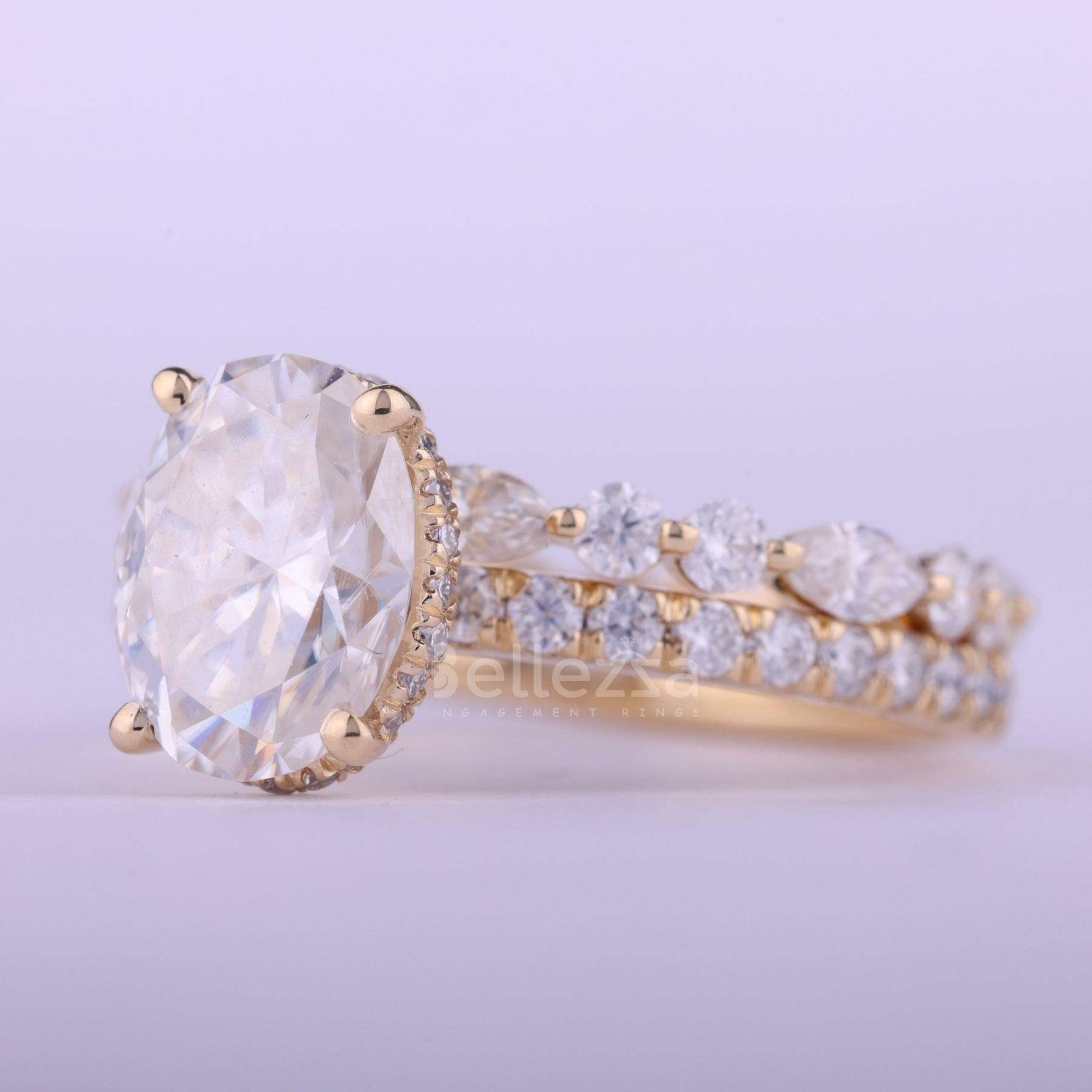 ✥The image showcases a dazzling 1.0CT Oval Cut Pave Setting Moissanite Engagement Ring Set, designed for timeless elegance and everyday brilliance. The center Oval Cut moissanite sparkles with soft curves and fire, perfectly complemented by a delicate Pavé Setting that enhances its glow. This Moissanite Engagement Ring Set includes a matching band that aligns seamlessly, creating a cohesive and luxurious bridal look. Loved for its finger-flattering shape and diamond-like sparkle, the ethical moissanite offers beauty with lasting value. Ideal for modern brides who desire classic romance with a touch of modern shine. A perfect symbol of forever love.