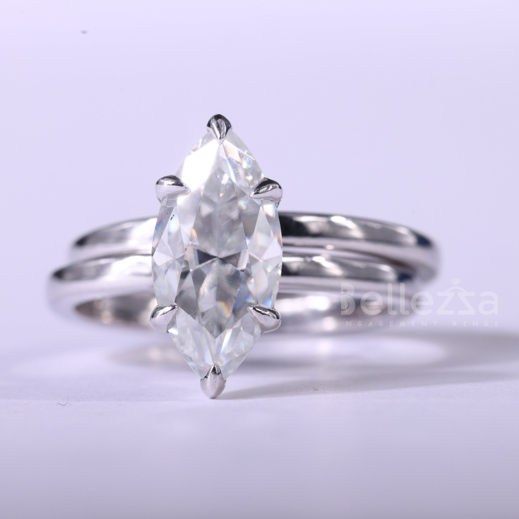 ✥This elegant image features the 1.50CT Marquise Cut Solitaire Moissanite Plain Bridal Ring Set, a timeless combination of simplicity and sparkle. The elongated marquise cut center stone enhances finger length while delivering exceptional brilliance. Designed as a solitaire, it draws all attention to the moissanite’s beauty, complemented by a plain band for a clean, classic look. Crafted as a premium moissanite bridal ring set, it offers diamond-like fire with ethical and affordable appeal. Ideal for brides who appreciate understated elegance, this set balances sophistication with everyday wearability. Celebrate your love story with this trending, radiant bridal set that exudes lasting charm.