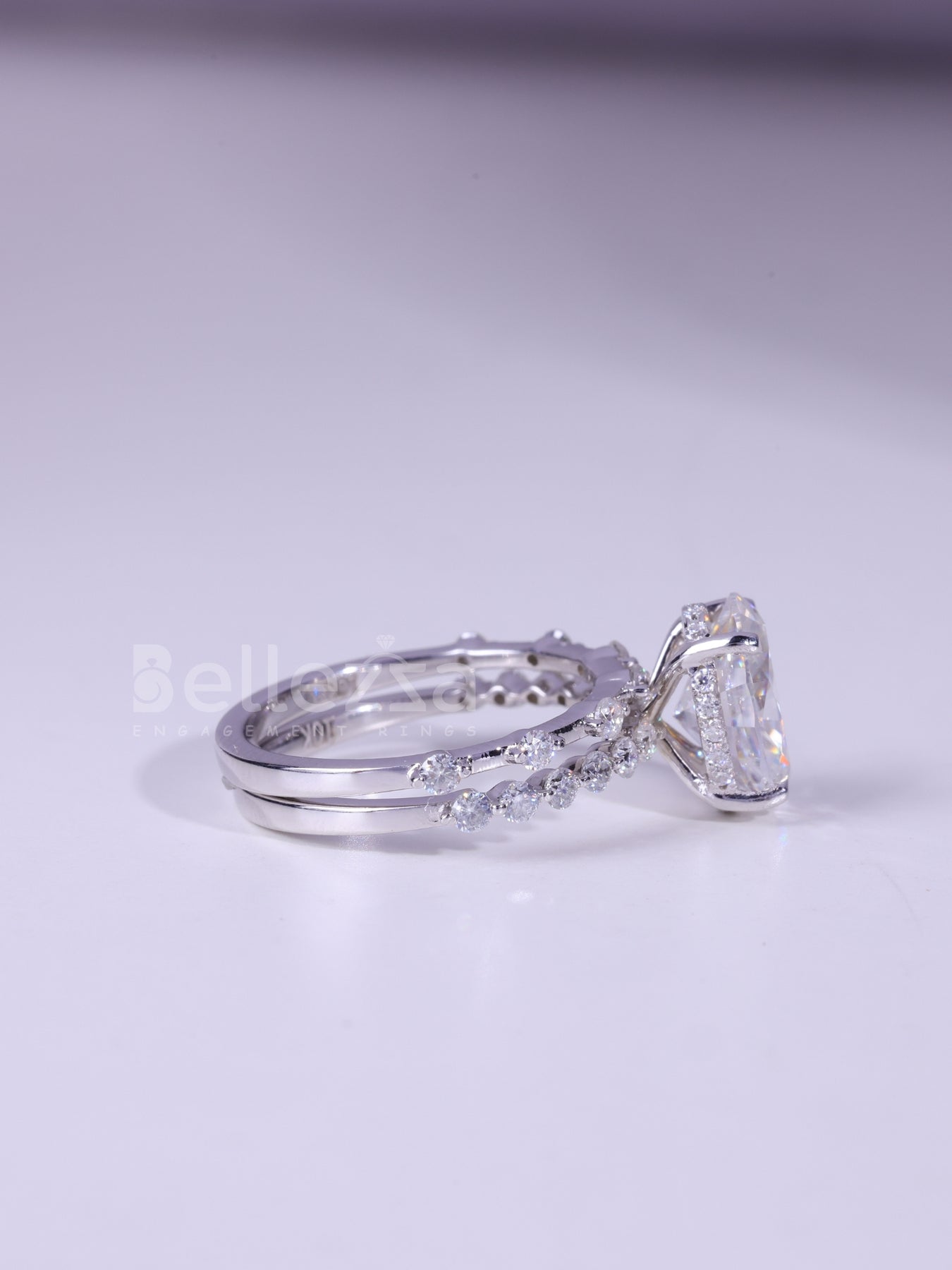 1.50CT Oval Cut Pave Setting Moissanite Bridal Ring Set