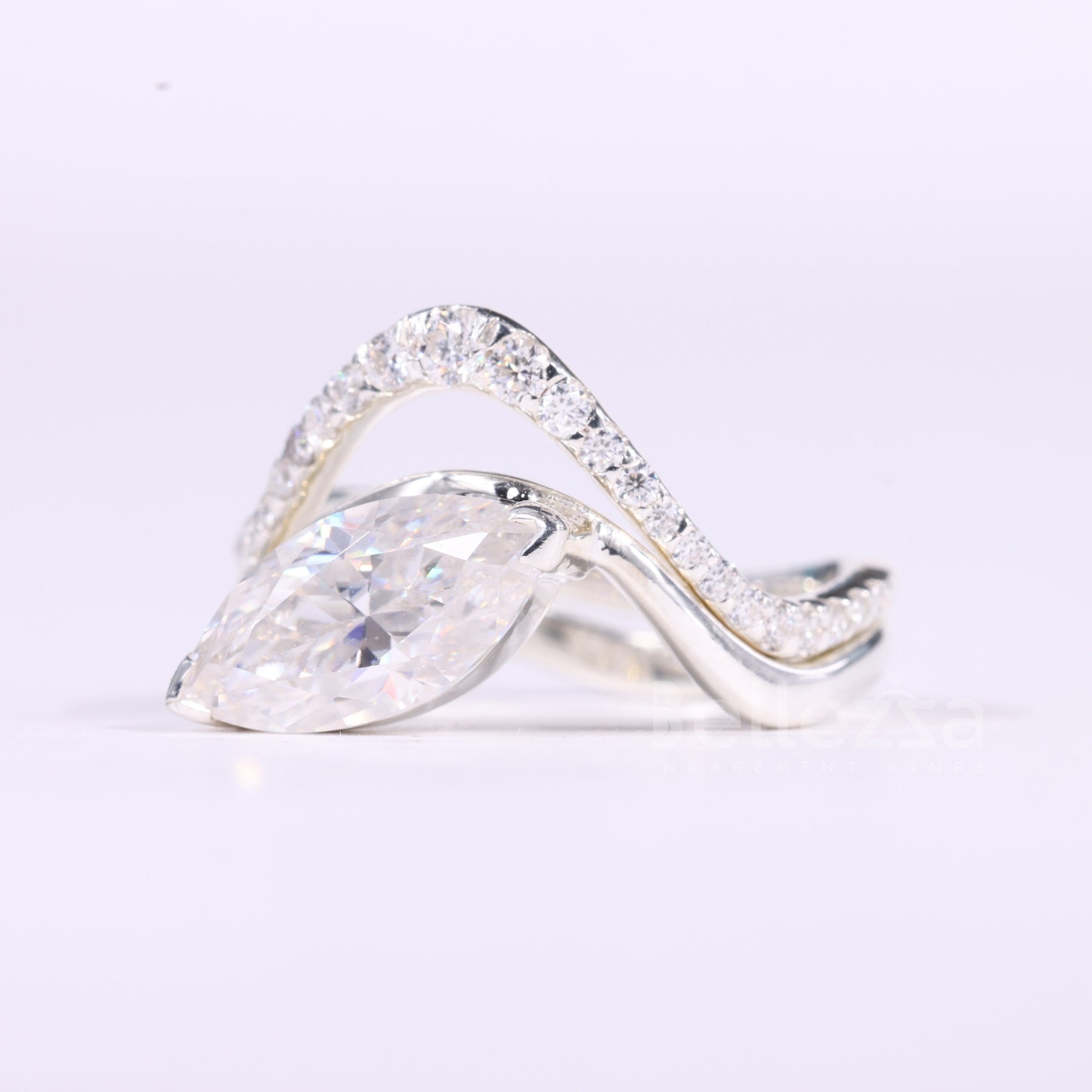 2.0CT East-West Marquise Cut Curved Moissanite Bridal Ring Set