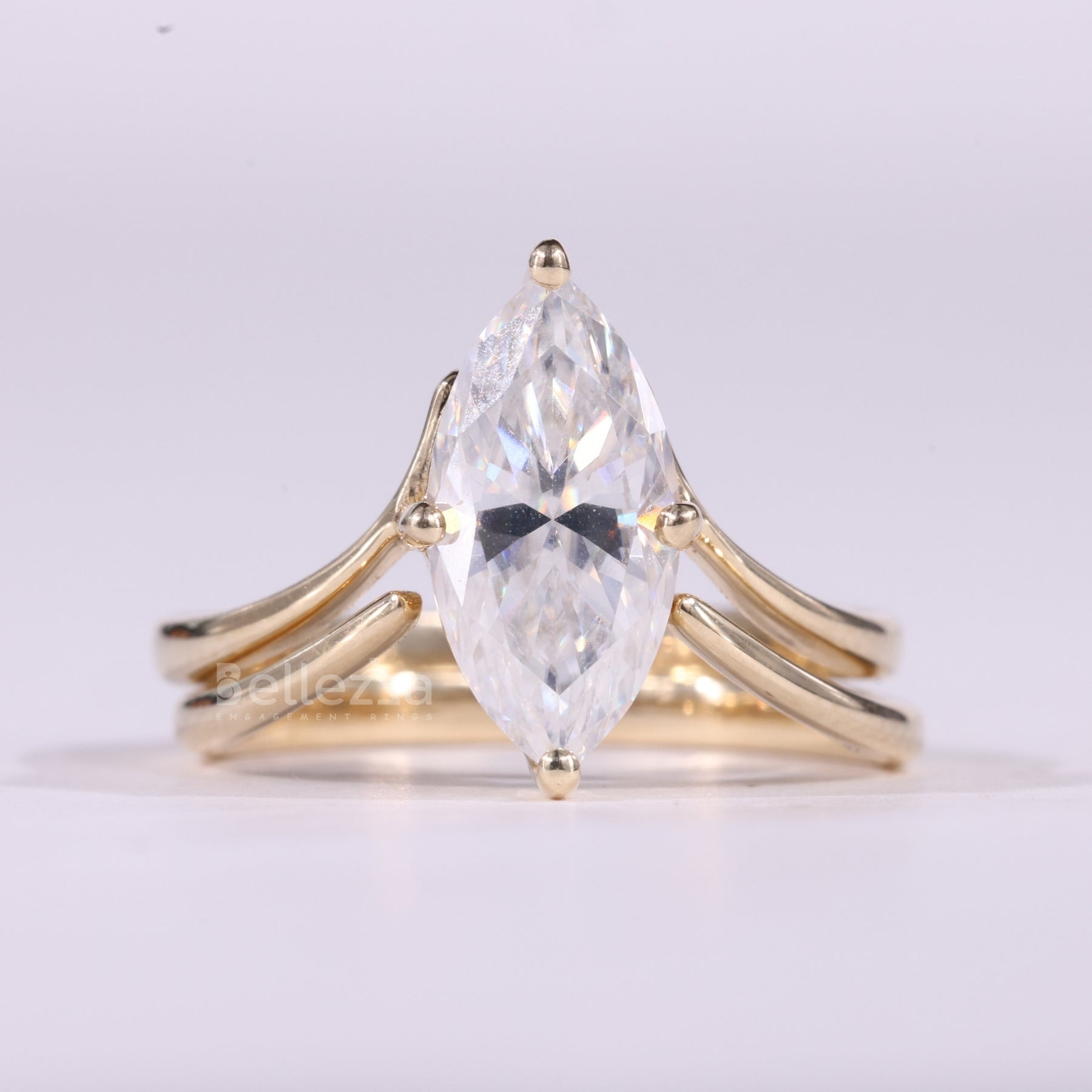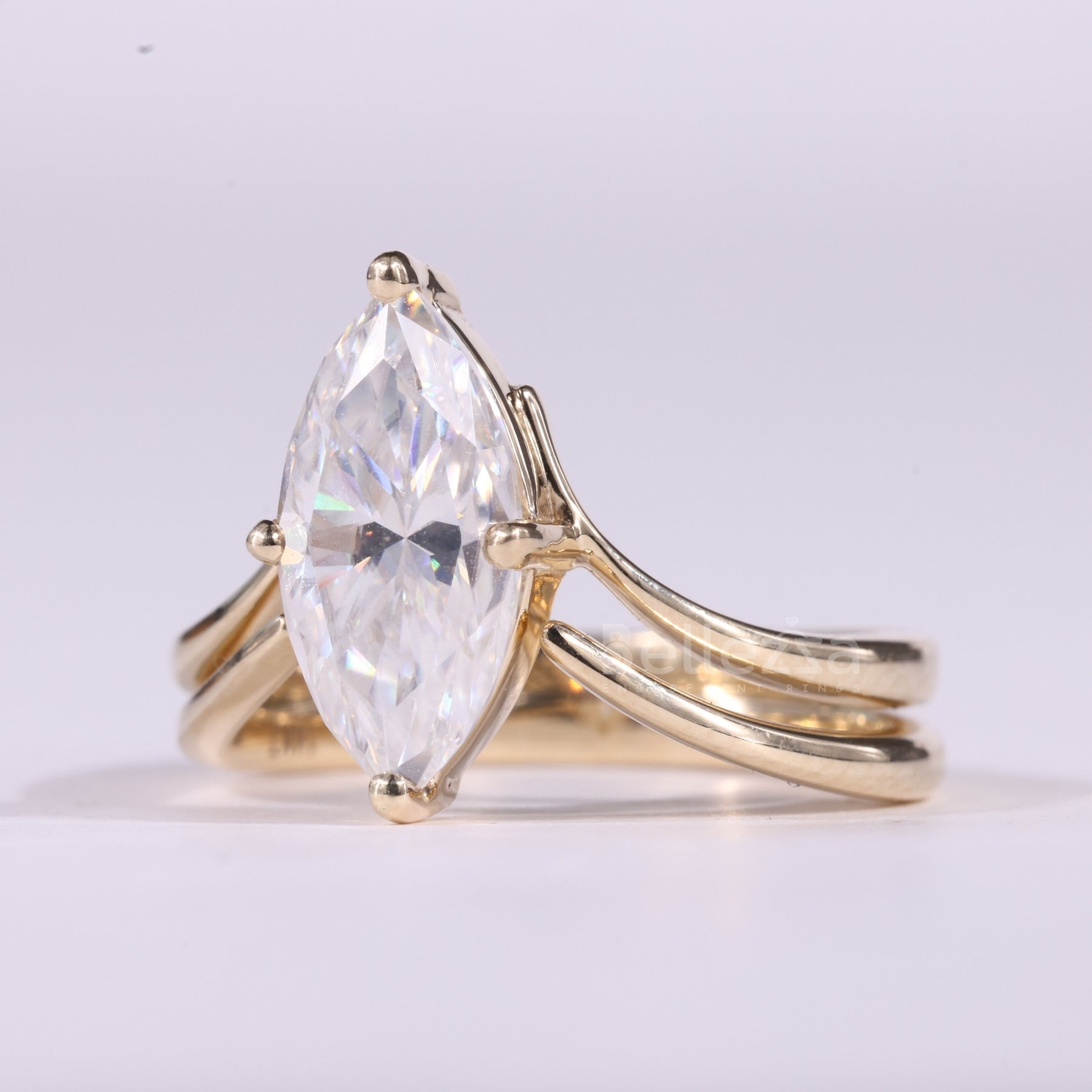2.0CT Marquise Cut Unique Solitaire Curved Moissanite Bridal Ring Set