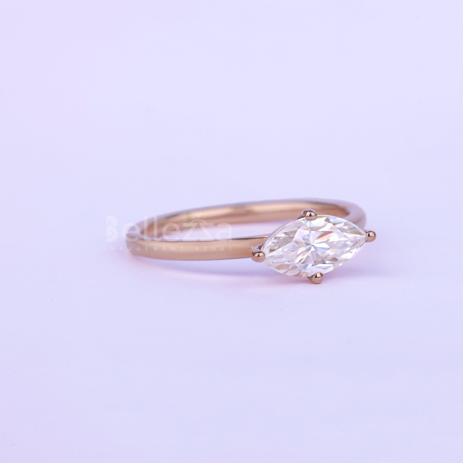 0.75CT East-West Marquise Cut Minimalis Solitaire Engagement Ring