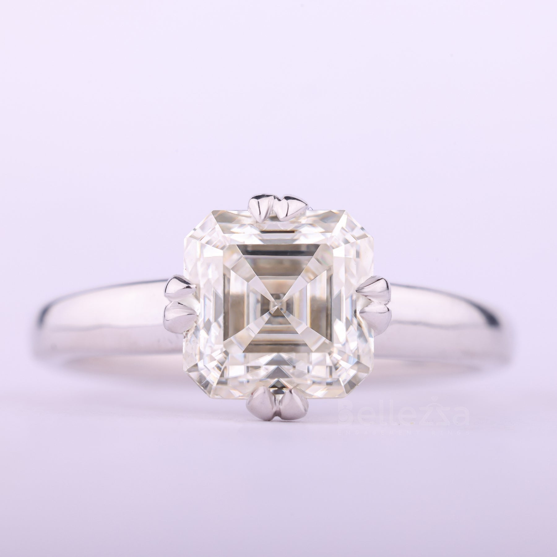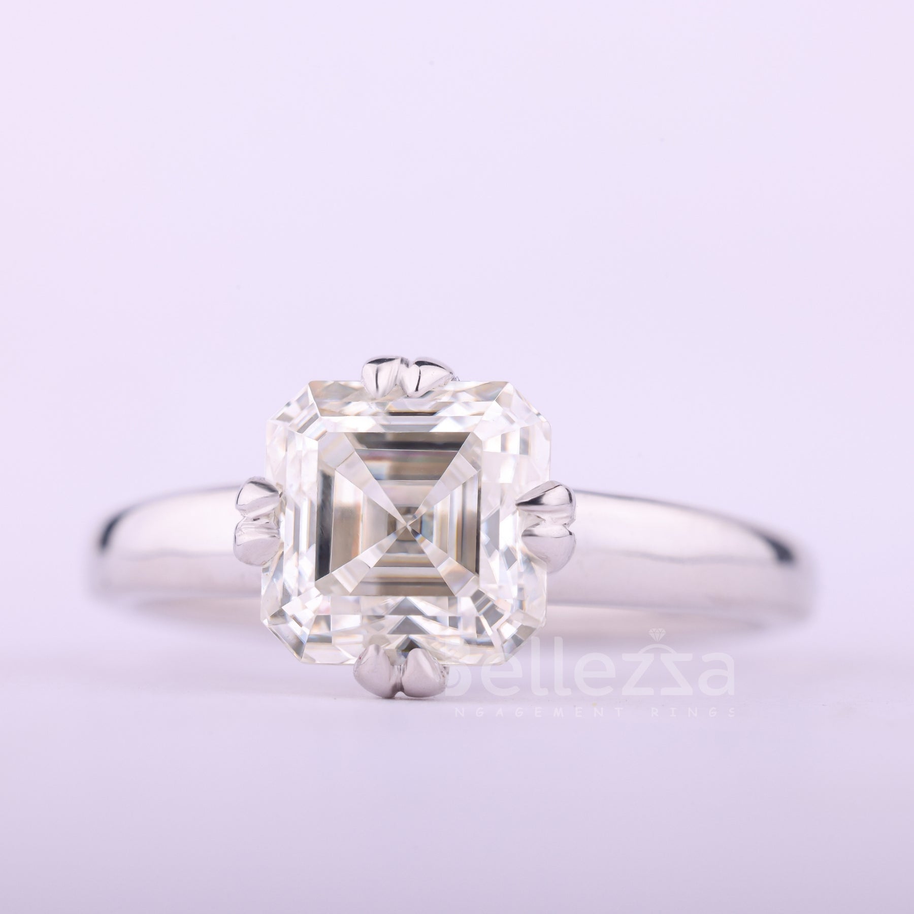 1.0CT Asscher Cut Diamond Moissanite Solitaire Engagement Ring