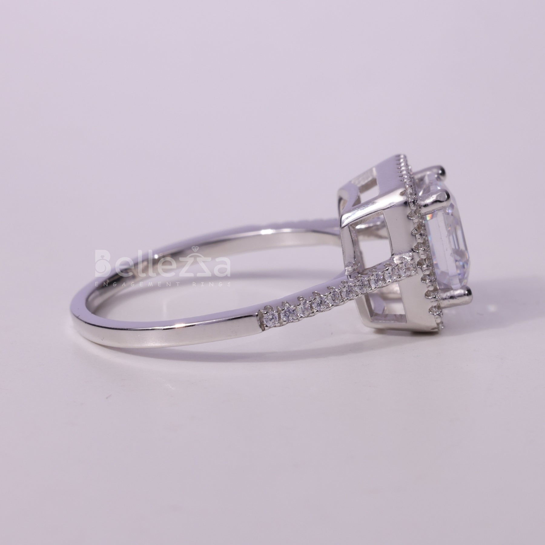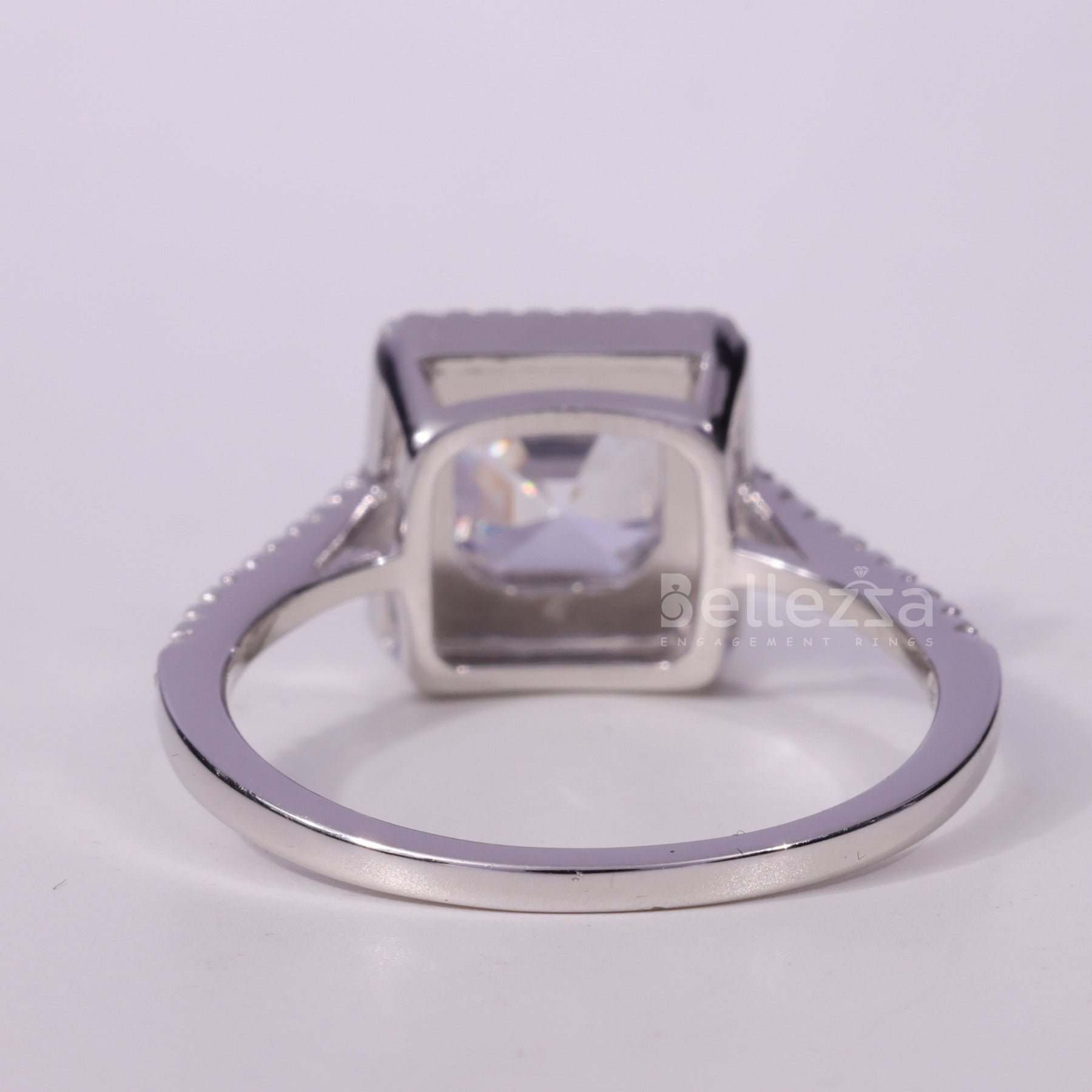1.0CT Asscher Cut Pave Setting Moissanite Engagement Ring