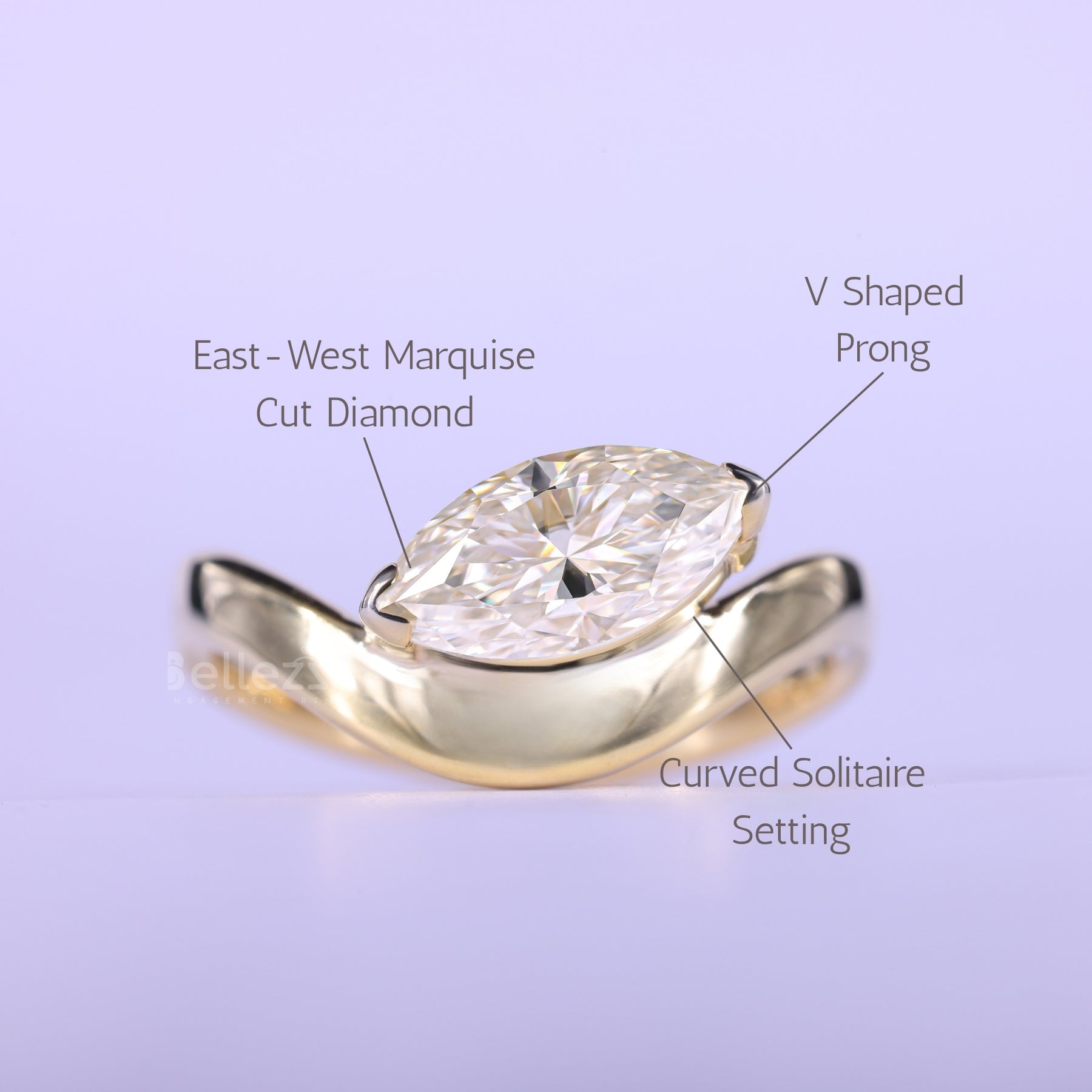 1.0CT East-West Marquise Cut Curved Moissanite Engagement Ring