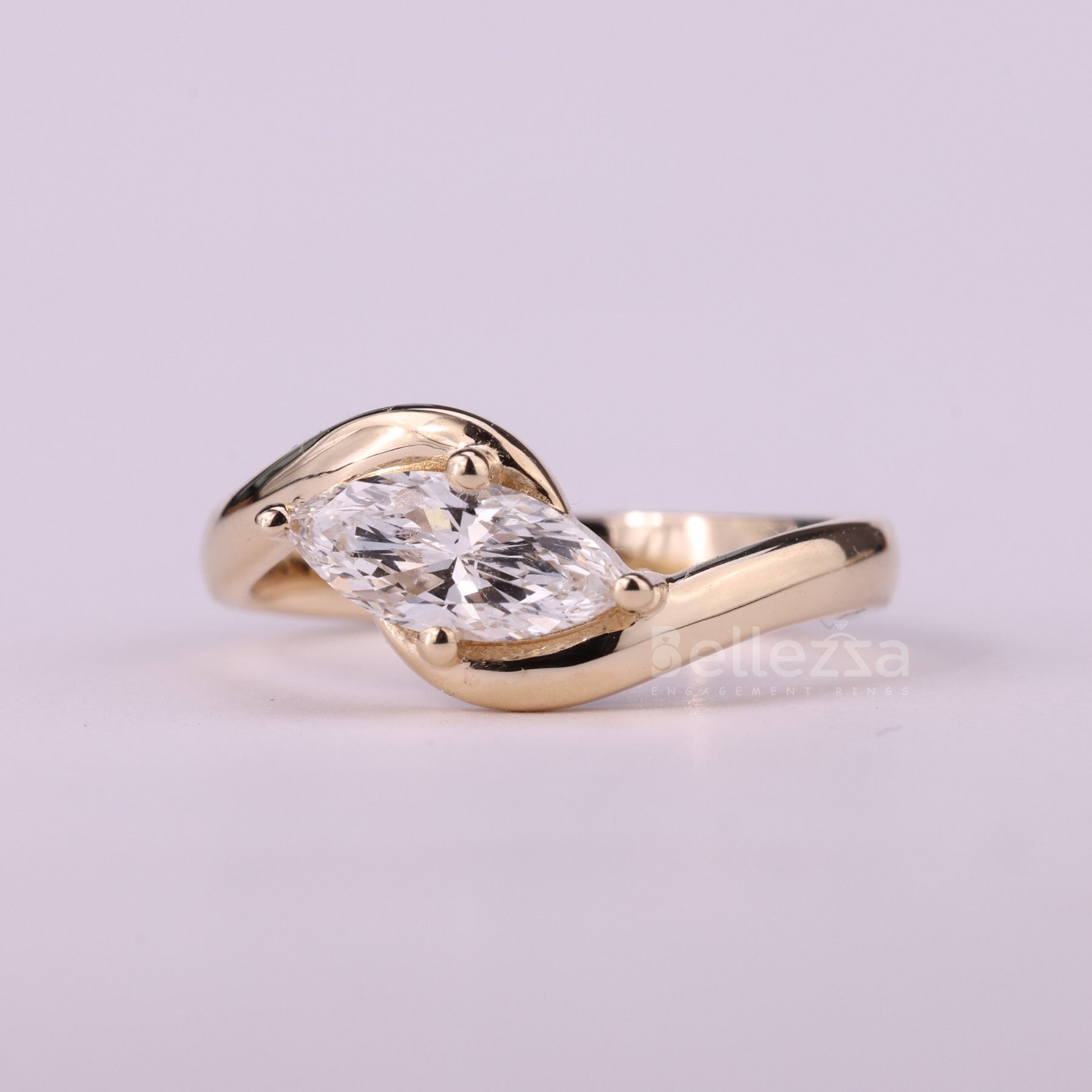 1.0CT East-West Marquise Cut Moissanite Engagement Ring