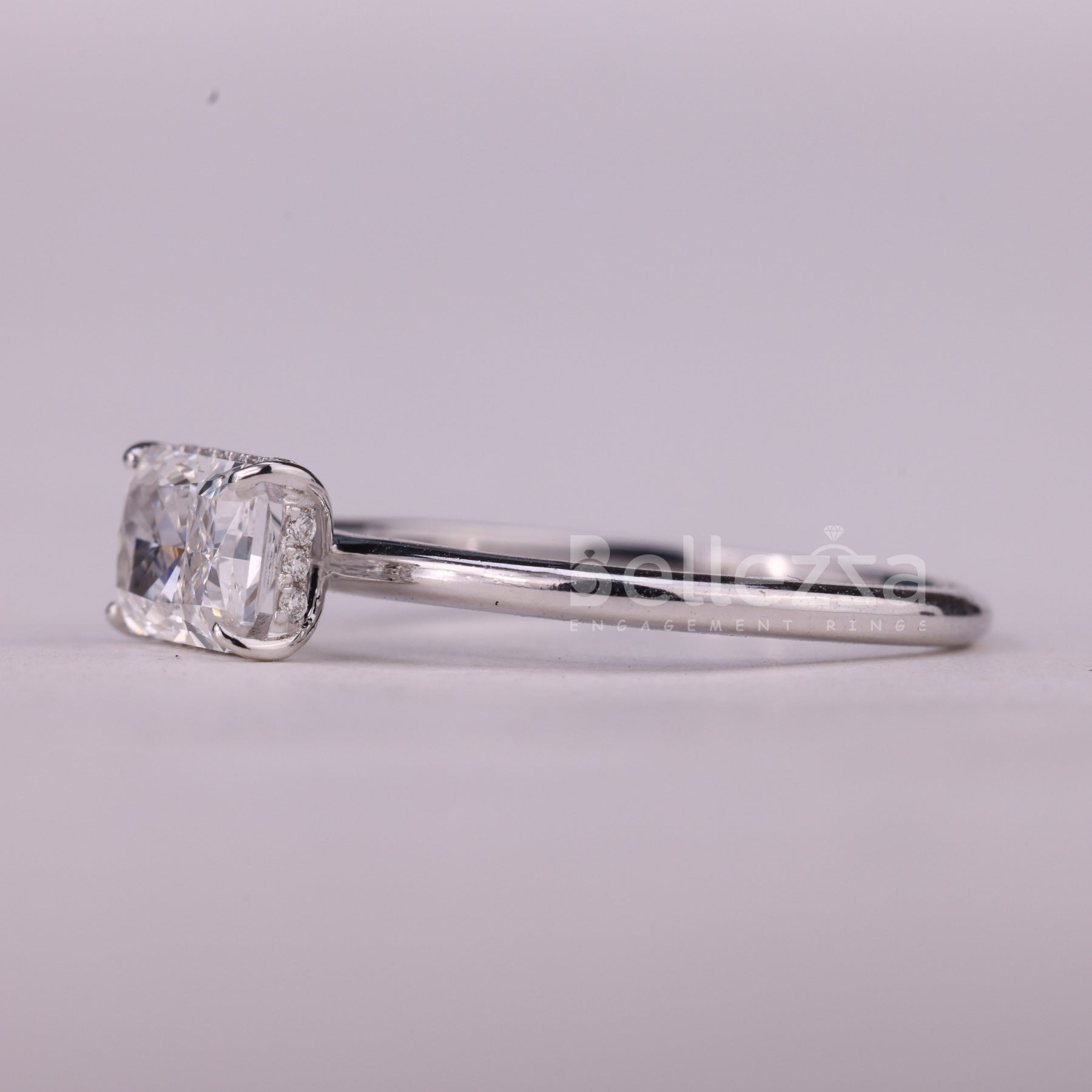 1.0CT East-West Radiant Cut Hidden Halo Moissanite Engagement Ring