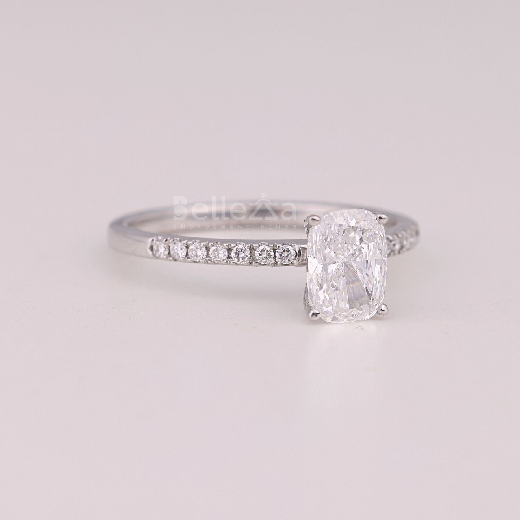 1.0CT Elongated Cushion Cut Pave Setting Engagement Ring