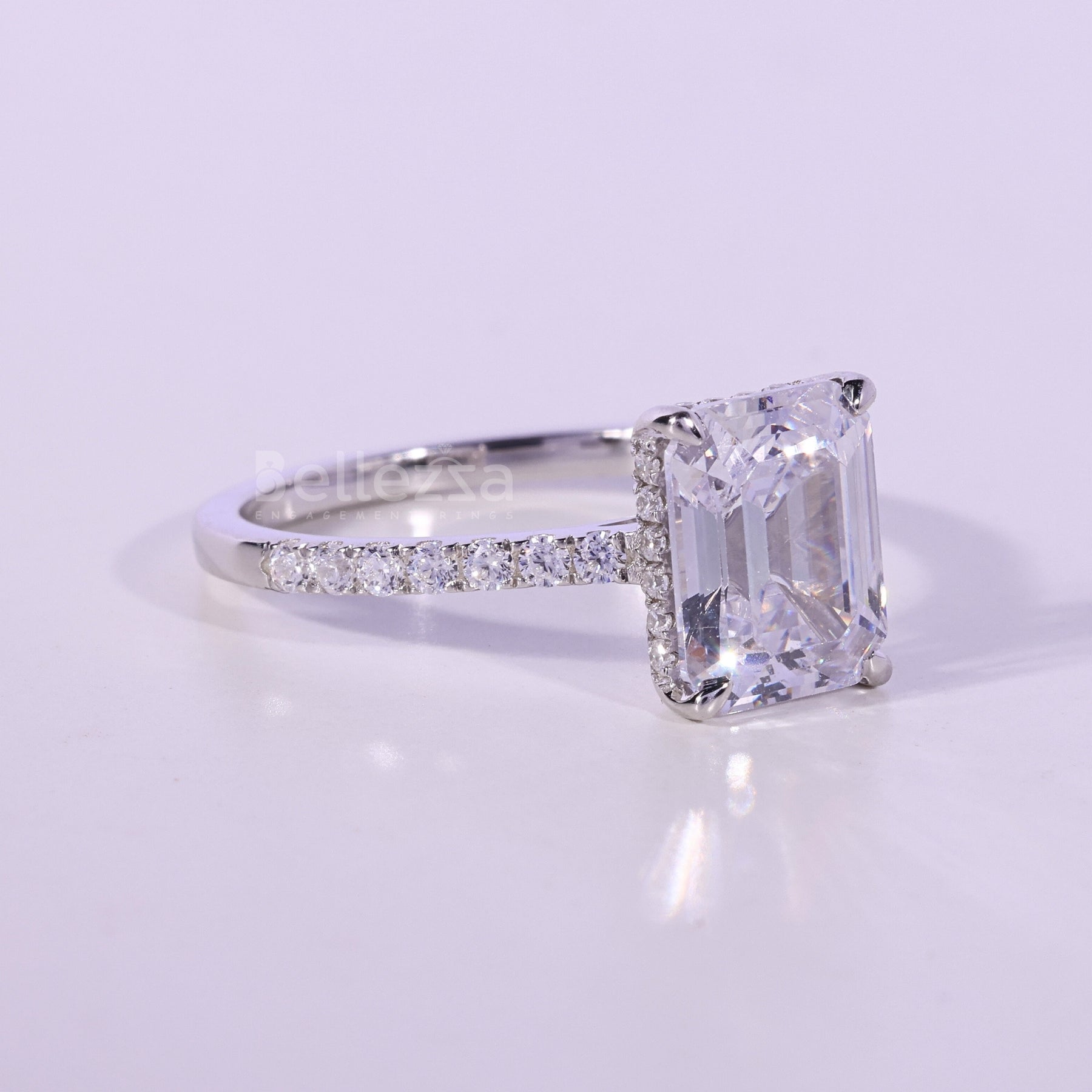 ✥The image showcases our elegant 1.0CT Emerald Cut Pave Setting Moissanite Engagement Ring, designed to radiate sophistication and timeless beauty. Featuring a striking emerald cut moissanite center stone accented by a shimmering pave band, this ring delivers exceptional brilliance and sparkle. Perfectly crafted for modern brides, this pave setting engagement ring symbolizes everlasting love and refined style. Ethically sourced stones ensure unmatched durability and quality, making it a luxurious yet affordable choice. A perfect blend of classic and contemporary design, this 1.0CT moissanite engagement ring is ideal for celebrating your most precious moments. Make your proposal unforgettable with this stunning emerald cut engagement ring.