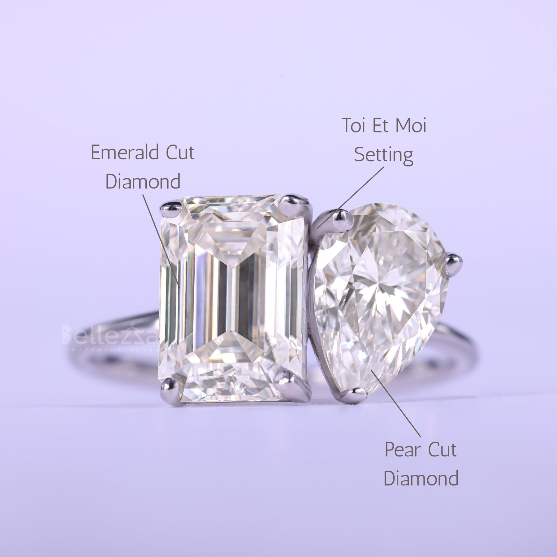 ✥The image showcases a romantic 1.0CT Emerald & Pear Cut Toi Et Moi Moissanite Engagement Ring, designed to represent two souls joining as one. Featuring a sleek Emerald Cut moissanite and a graceful Pear Cut stone, this ring blends structured elegance with soft sparkle in perfect harmony. The iconic Toi Et Moi setting curves gently around the finger, symbolizing unity and balance in love. Ethically crafted, this Moissanite Engagement Ring offers diamond-like brilliance with meaningful design. Ideal for modern brides seeking uniqueness, romance, and timeless sophistication in one unforgettable piece.