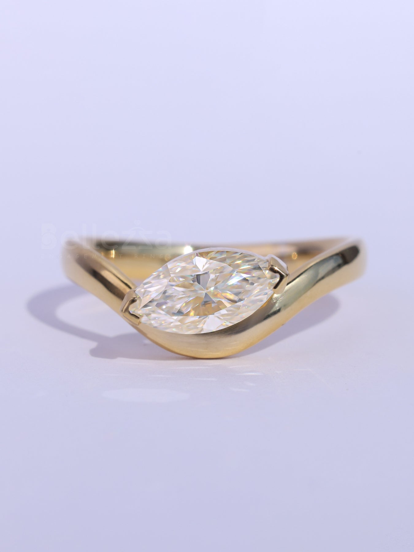 1.0CT Marquise Cut Curved Unique Solitaire Engagement Ring