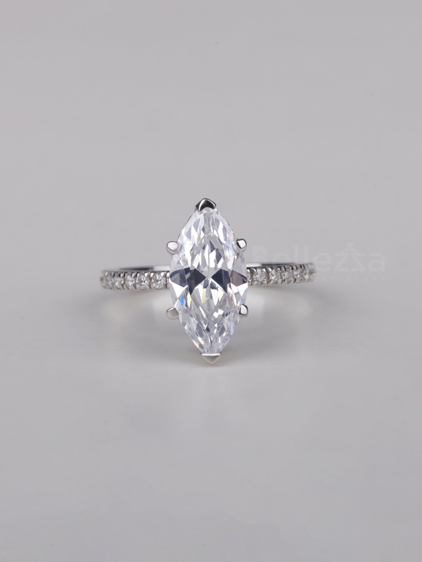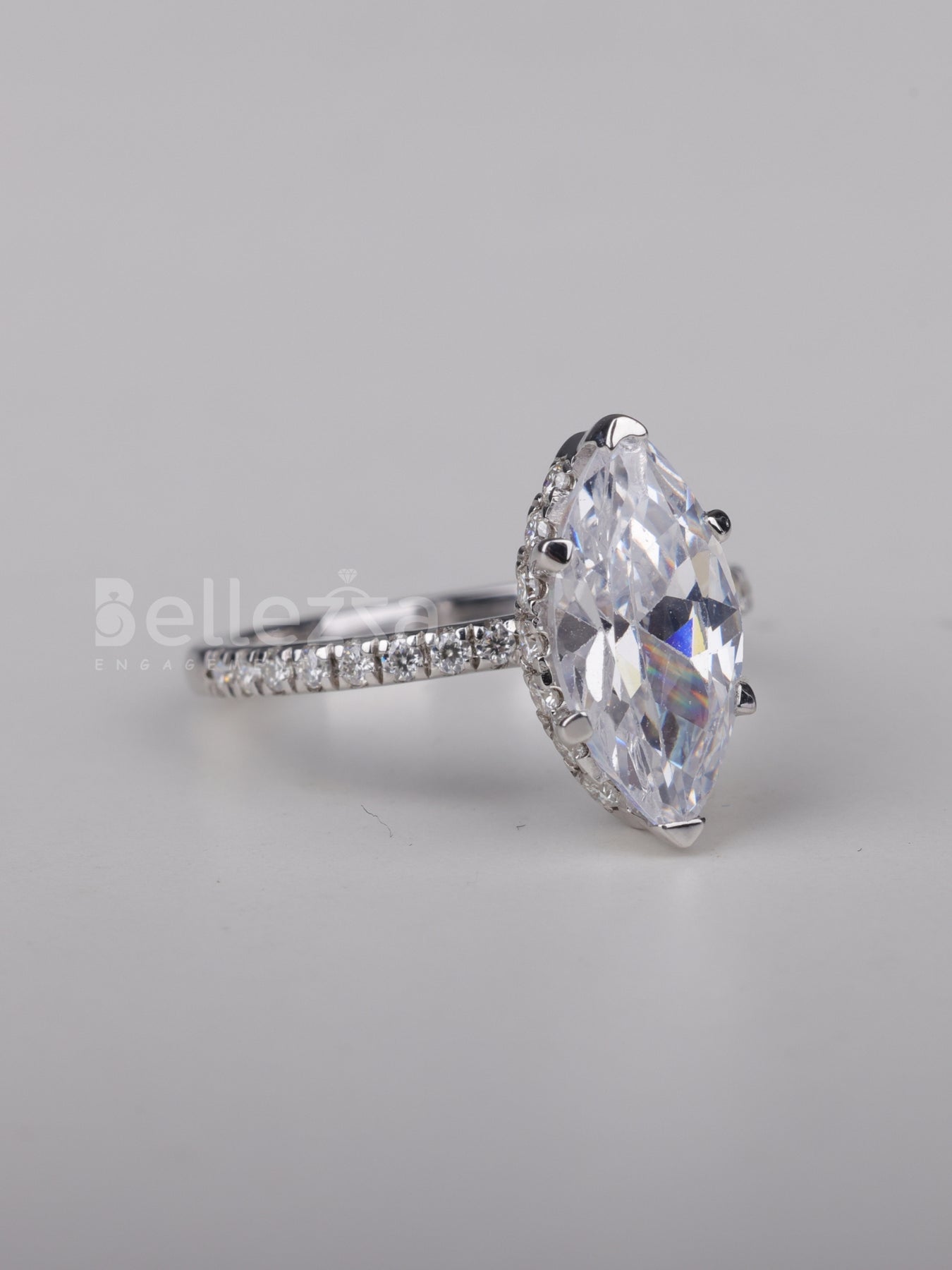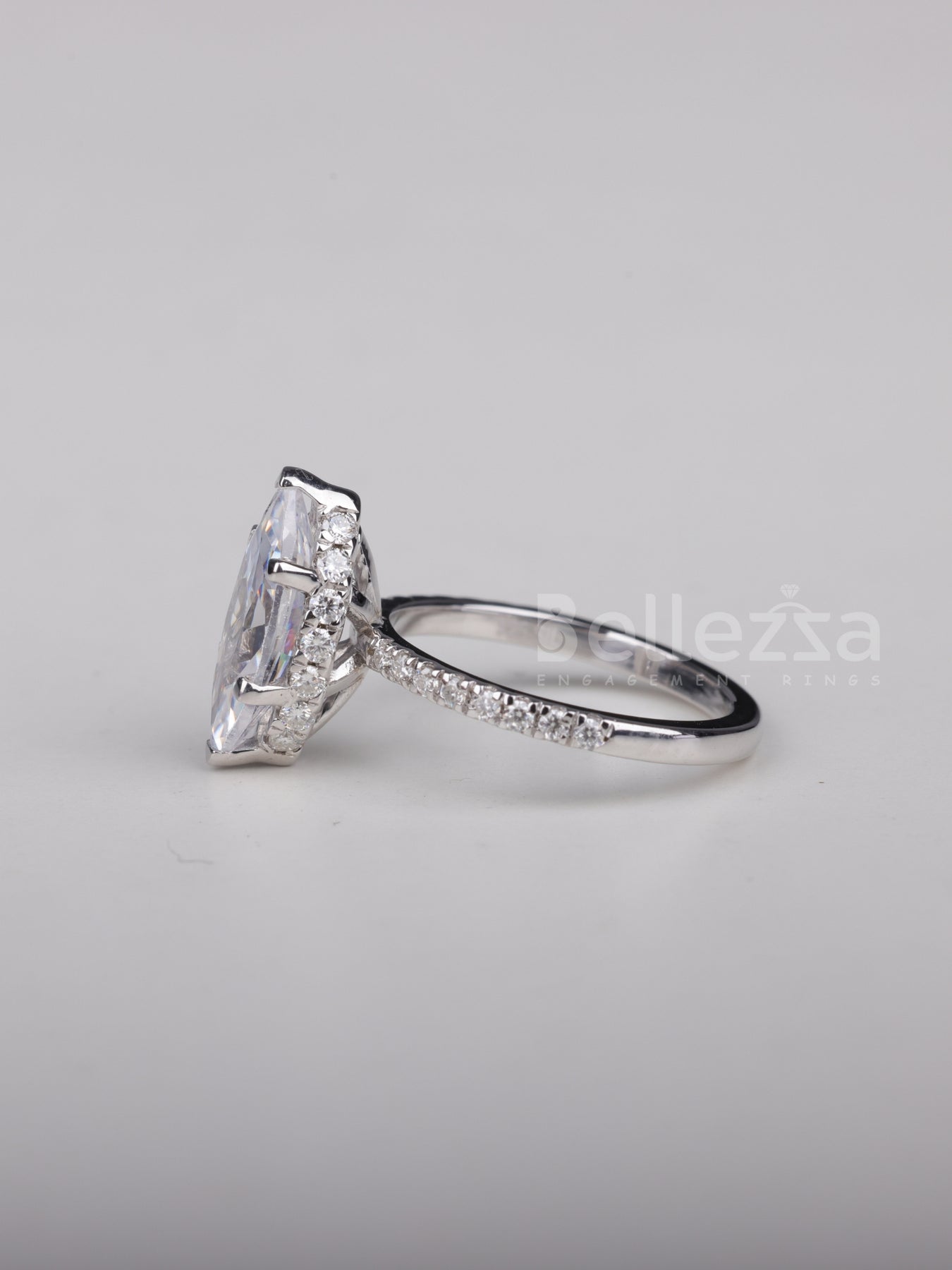 1.0CT Marquise Cut Pave Setting Moissanite Engagement Ring