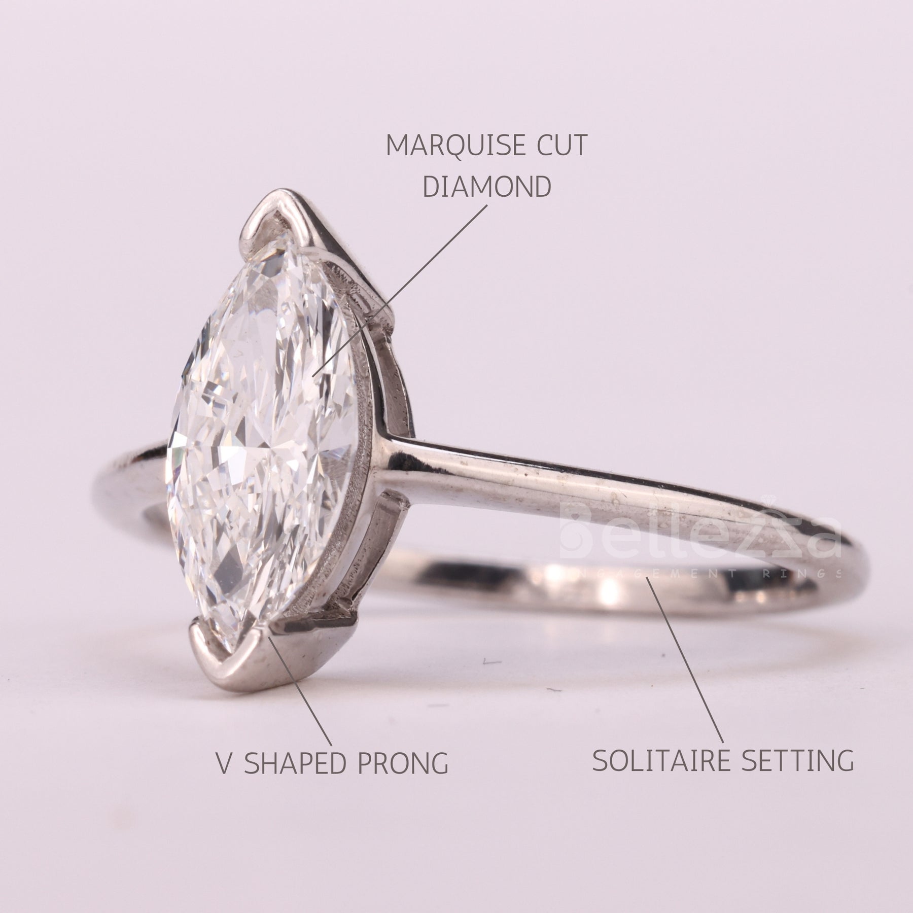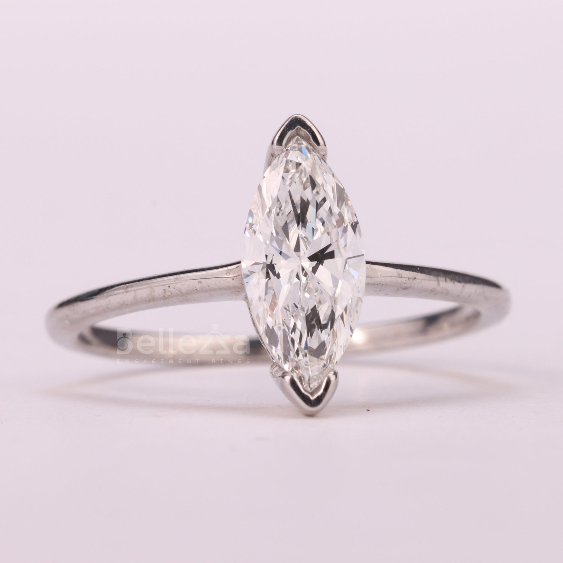 1.0CT Marquise Cut Solitaire Moissanite Engagement Ring