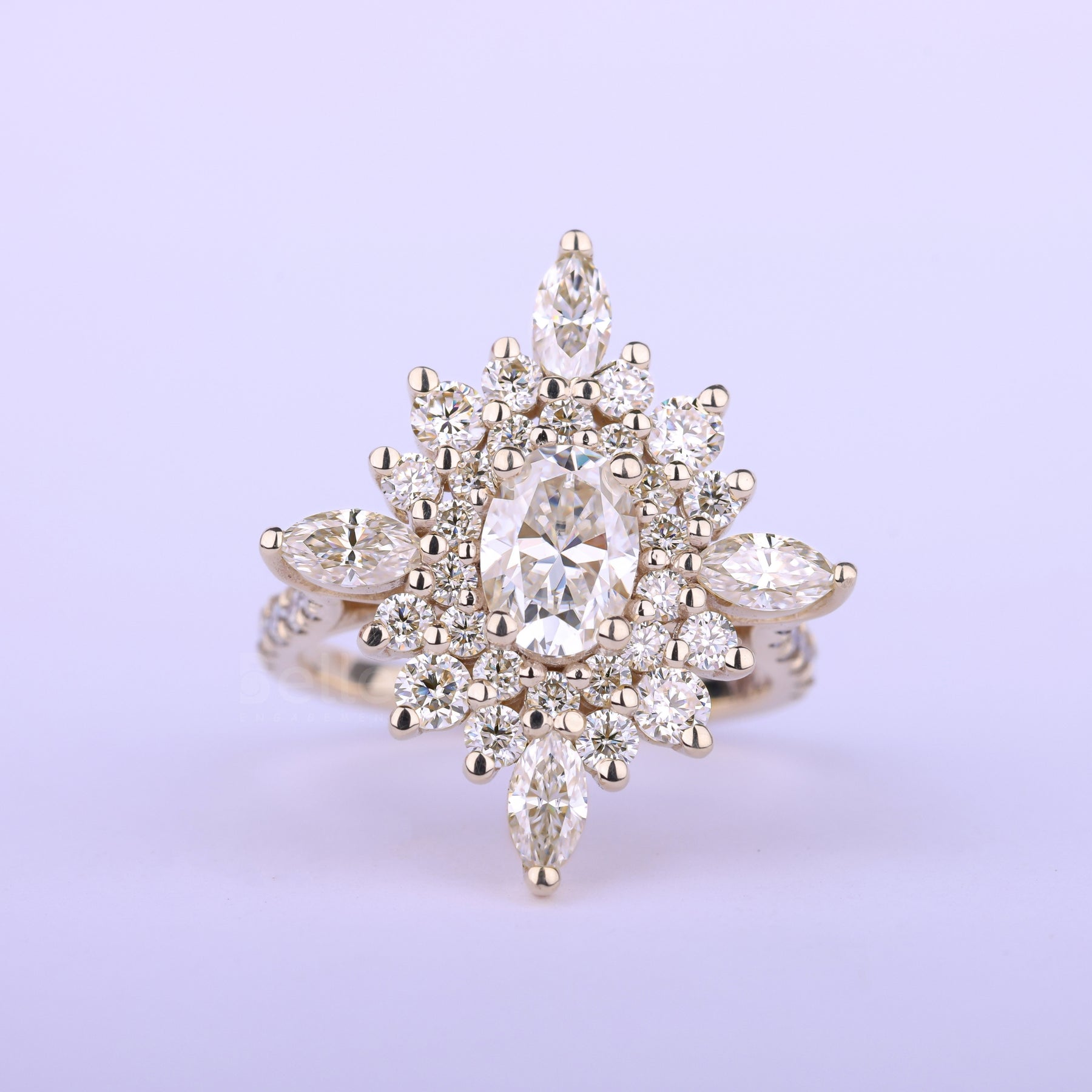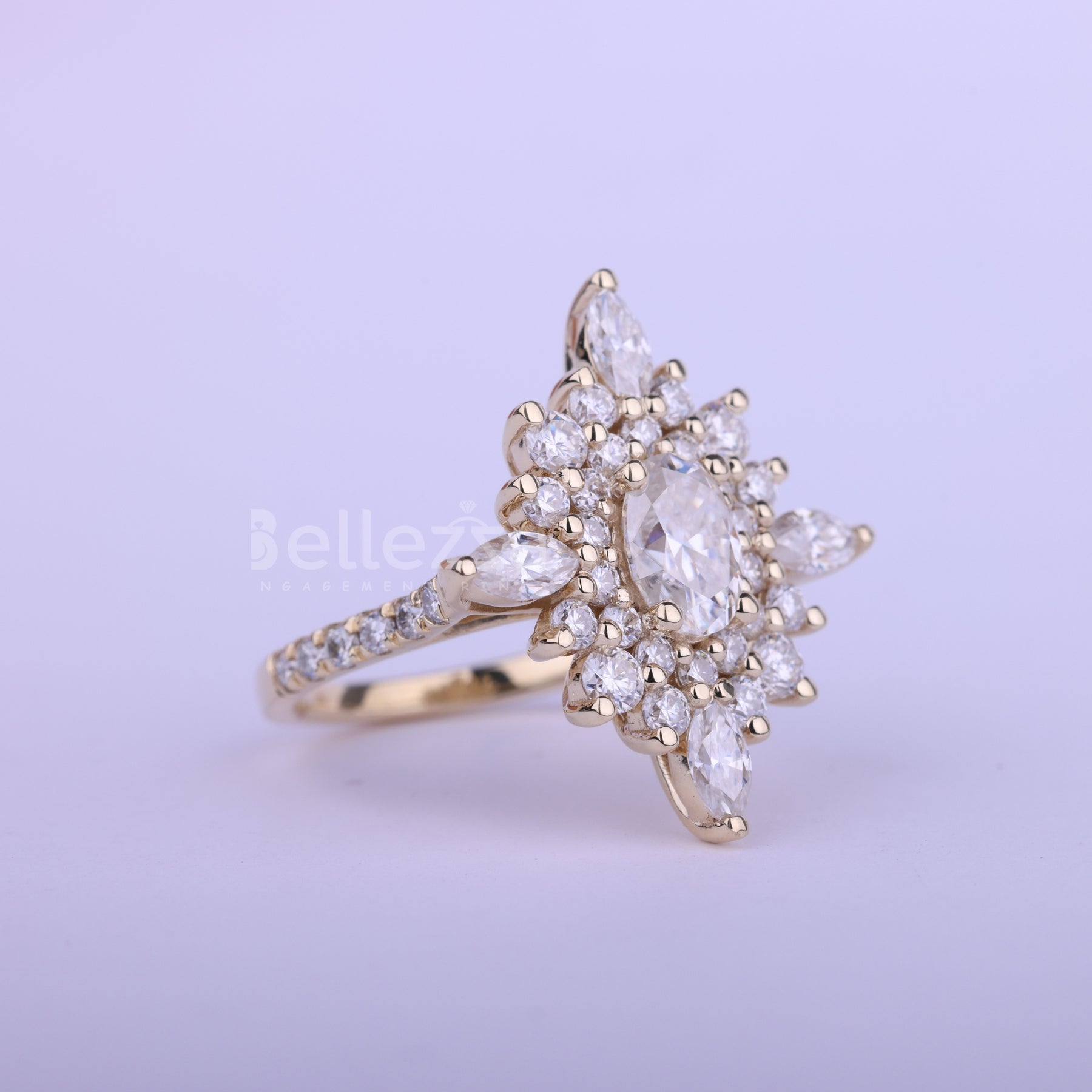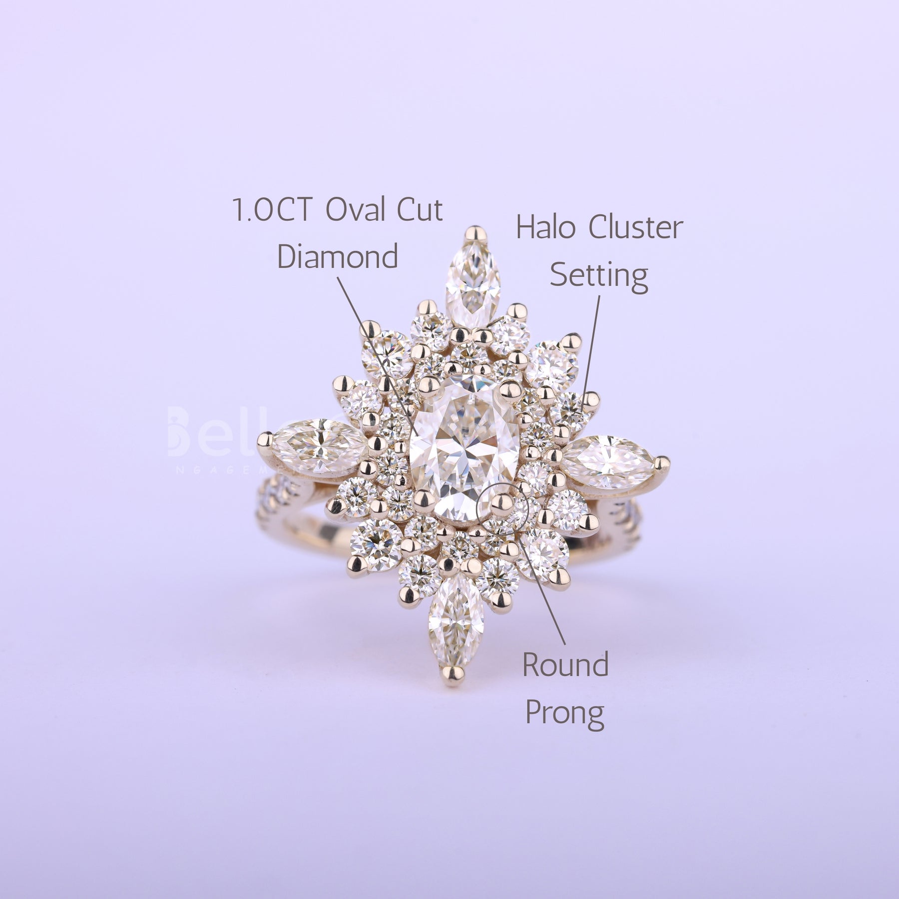 1.0CT Oval Cut Halo Cluster Diamond Moissanite Engagement Ring