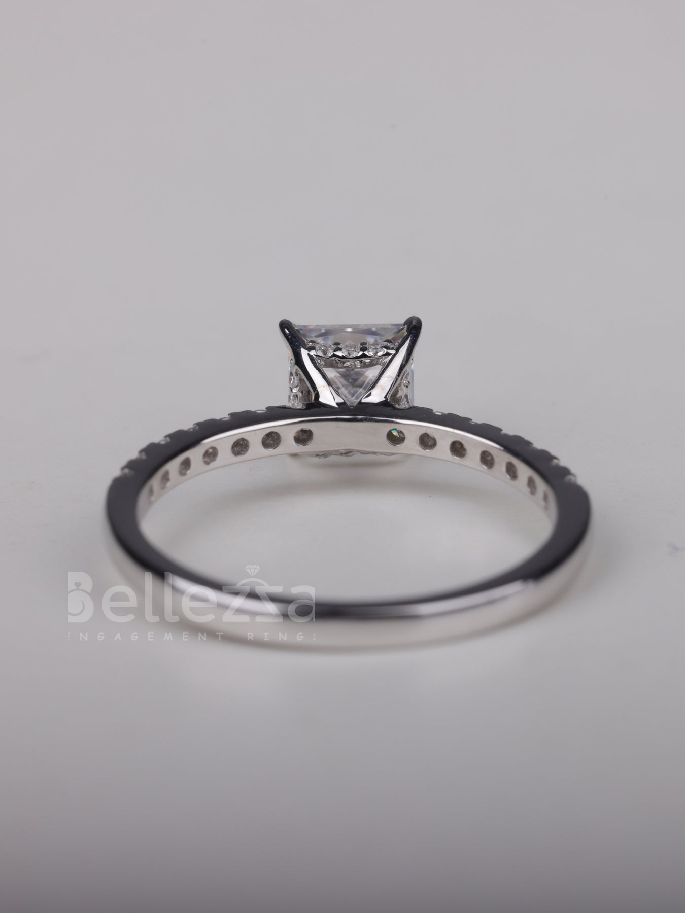 1.0CT Princess Cut Diamond Pave Setting Moissanite Engagement Ring