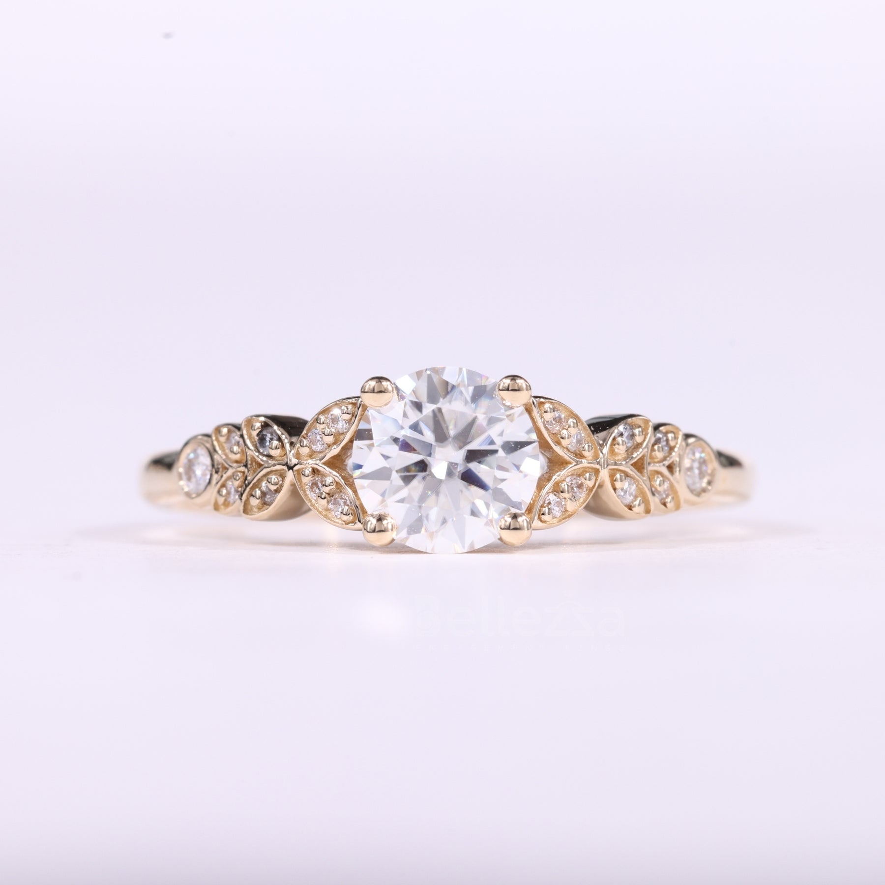 1.0CT Round Cut Cluster Diamond Moissanite Vintage Inspired Ring