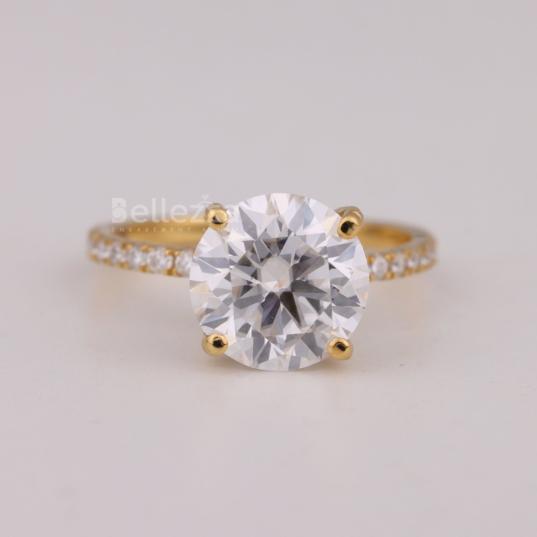 1.0CT Round Cut Diamond Pave Setting Moissanite Engagement Ring