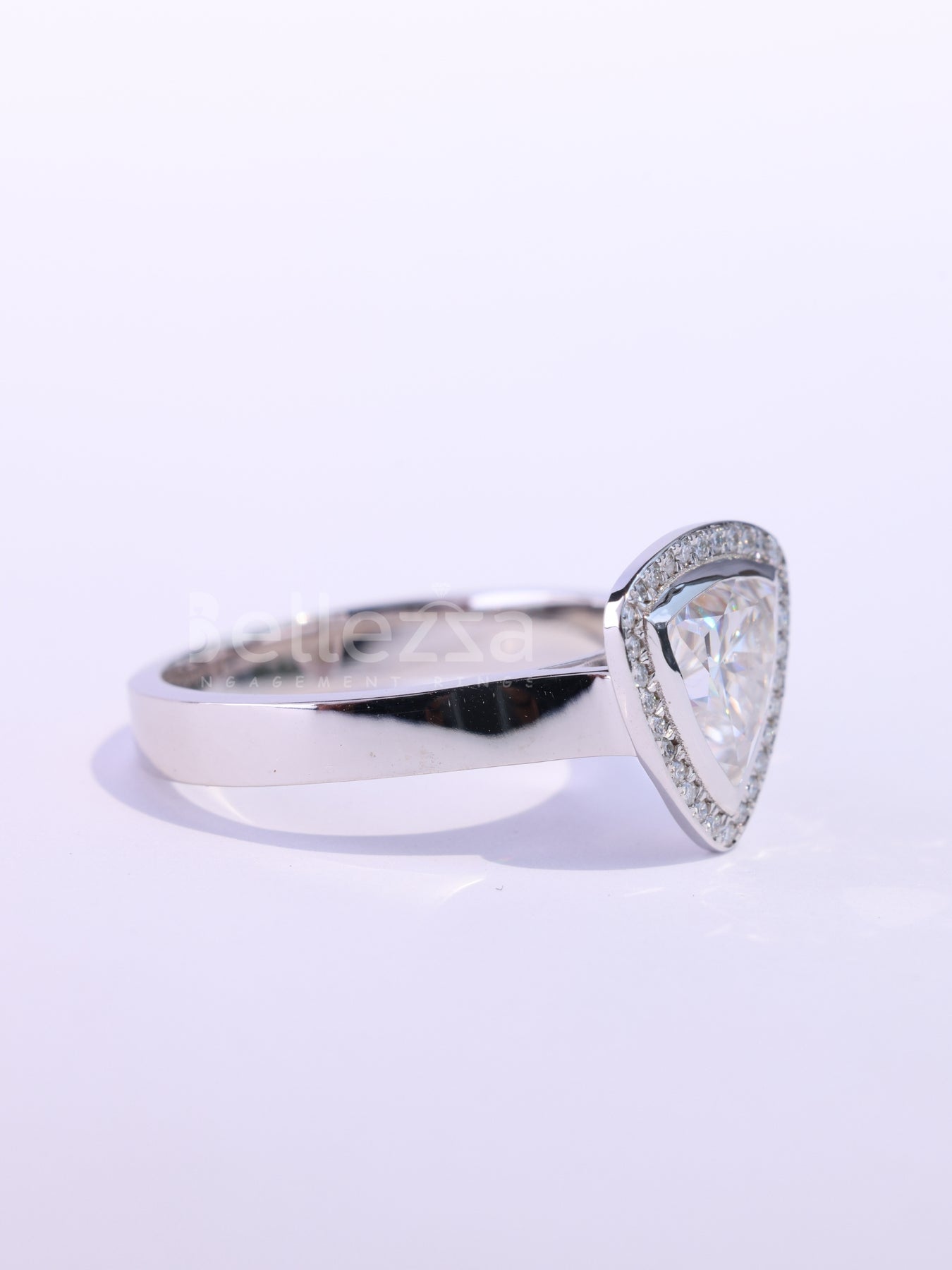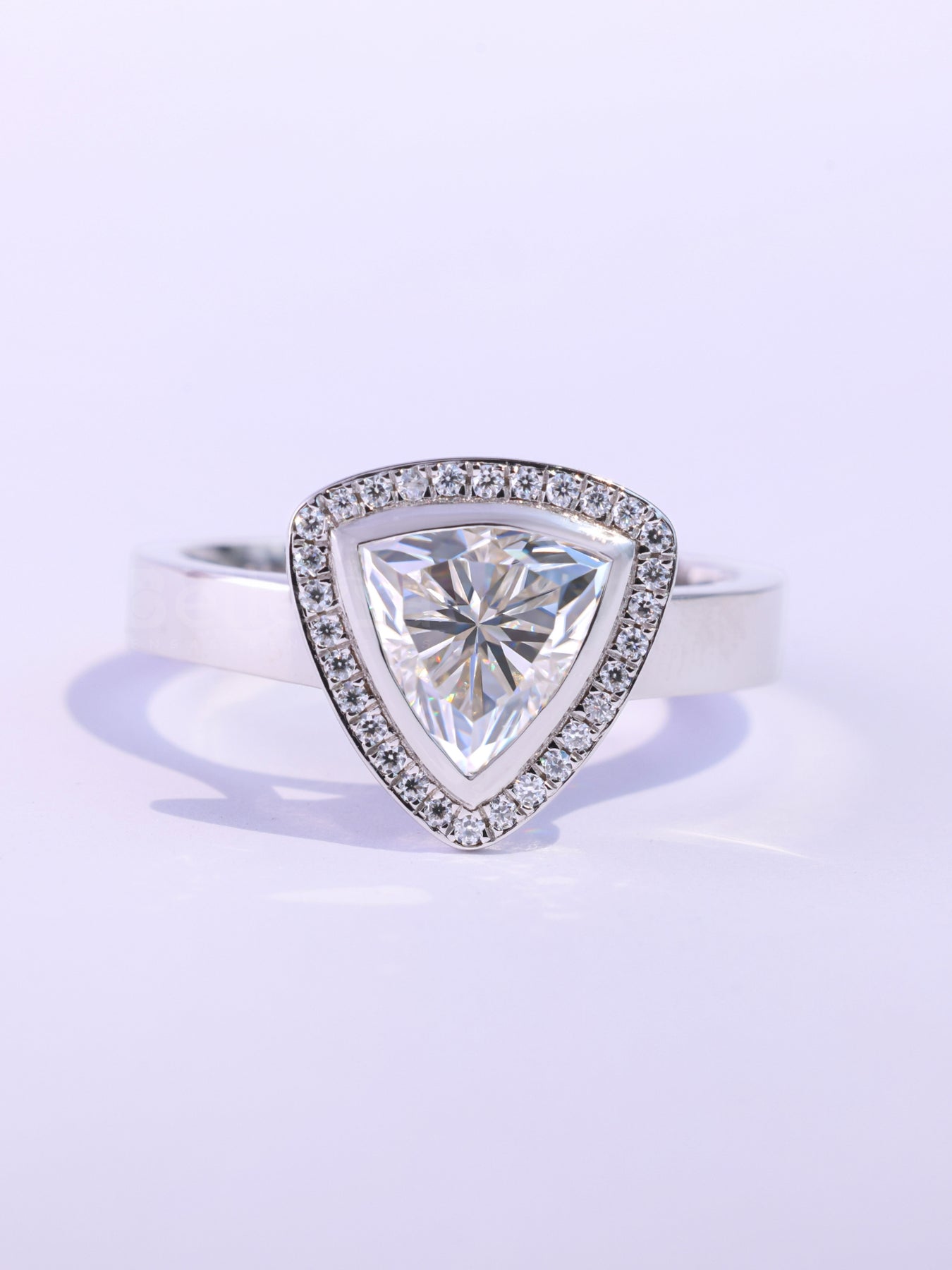 1.0CT Triangle Cut Halo Set Moissanite Engagement Ring