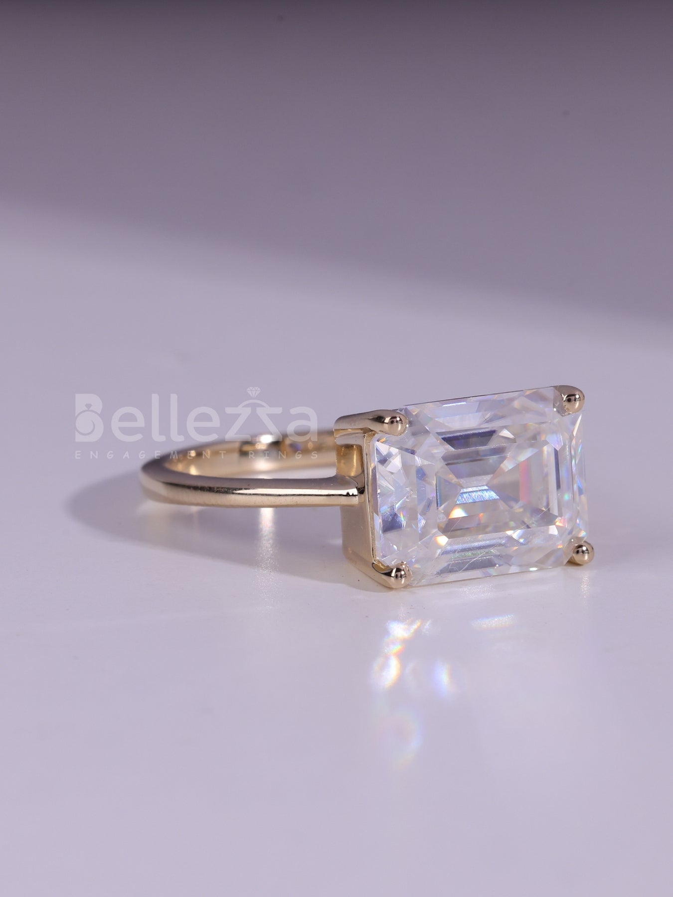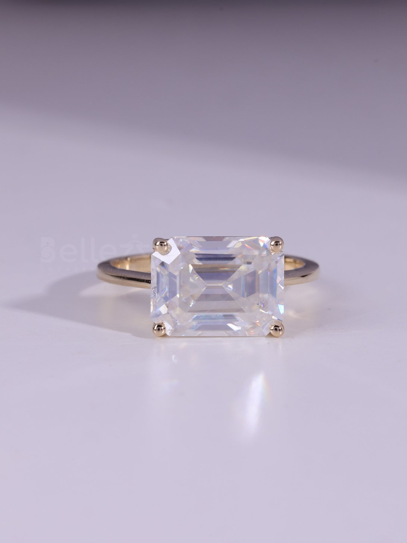 ✥This 3.0CT East West Emerald Cut Solitaire Engagement Ring features a striking horizontal emerald cut, making a bold, contemporary statement. Its clean lines and substantial carat weight exude modern elegance. A perfect choice for those who love refined minimalism with standout presence.