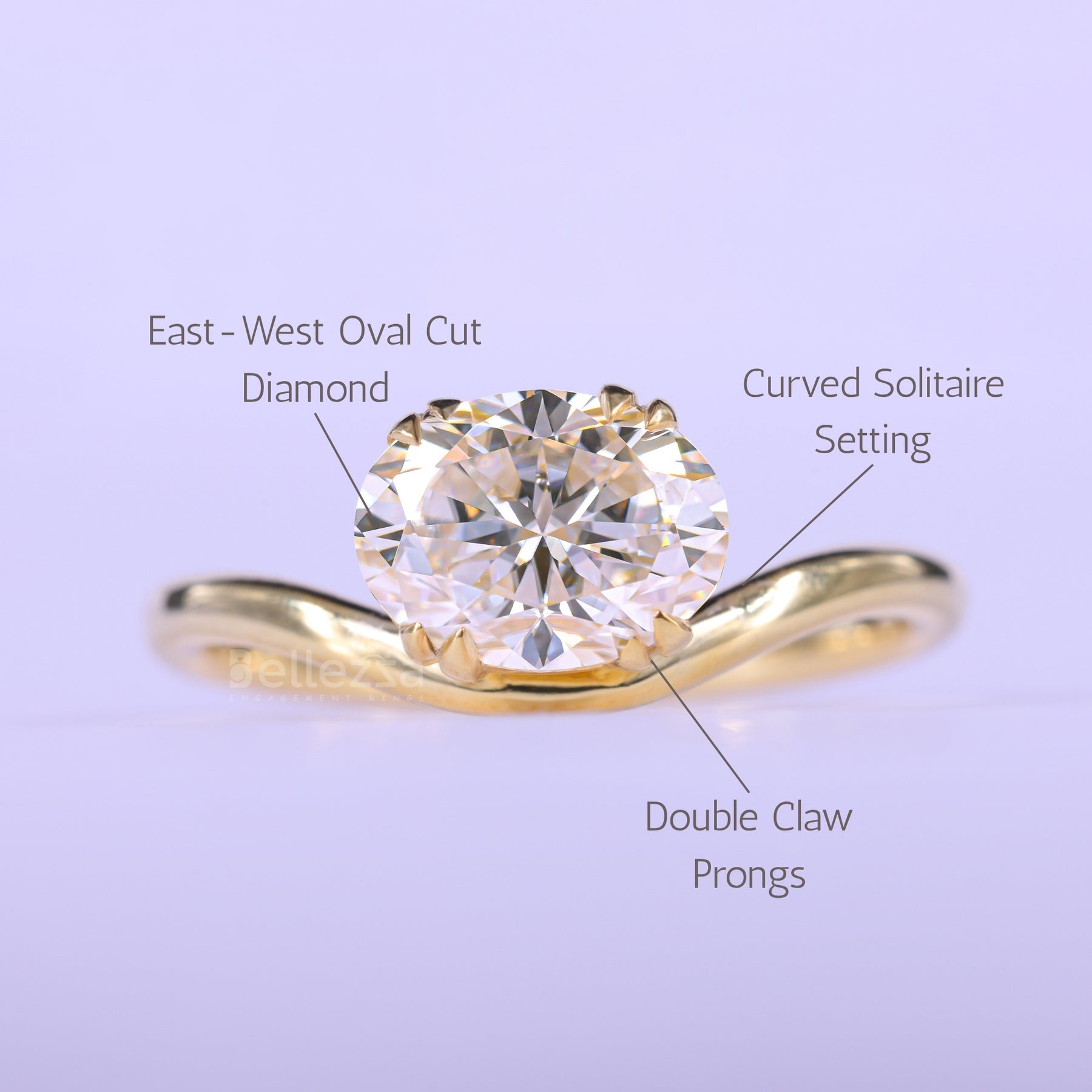 1.50CT East-West Oval Cut Curved Moissanite Engagement Ring